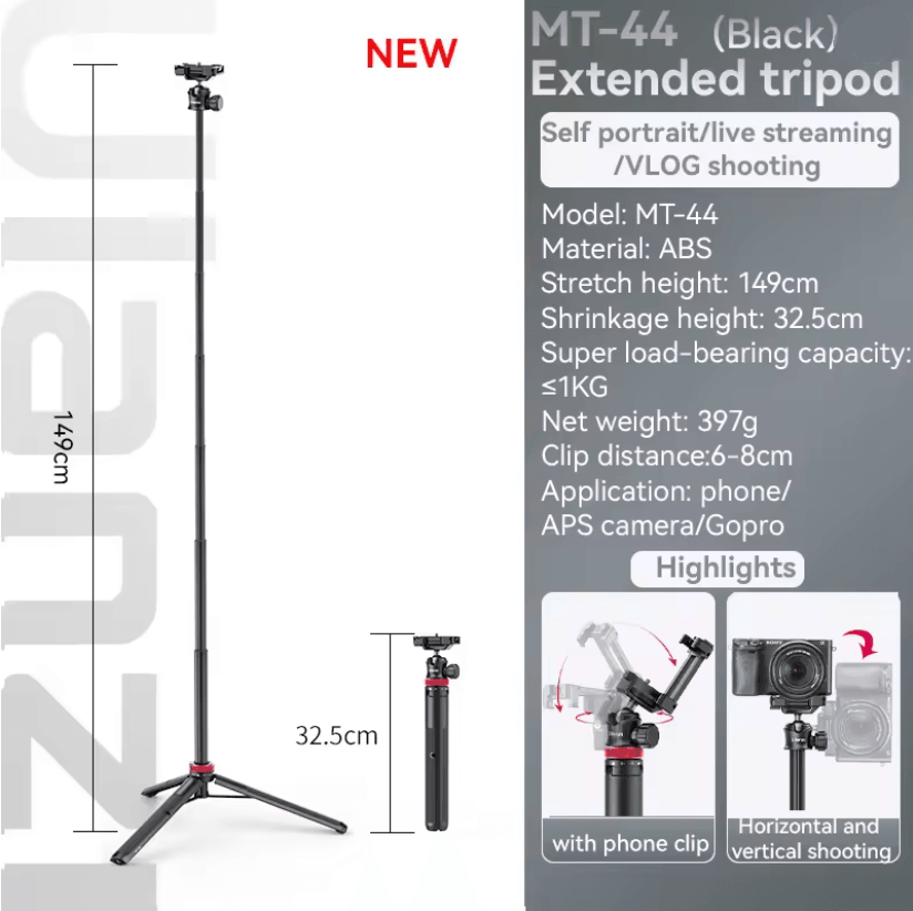 Ulanzi MT44 Extendable Selfie Stick Tripod With Phone Clamp For IPhone, Android, And Cameras black Mt 44 New
