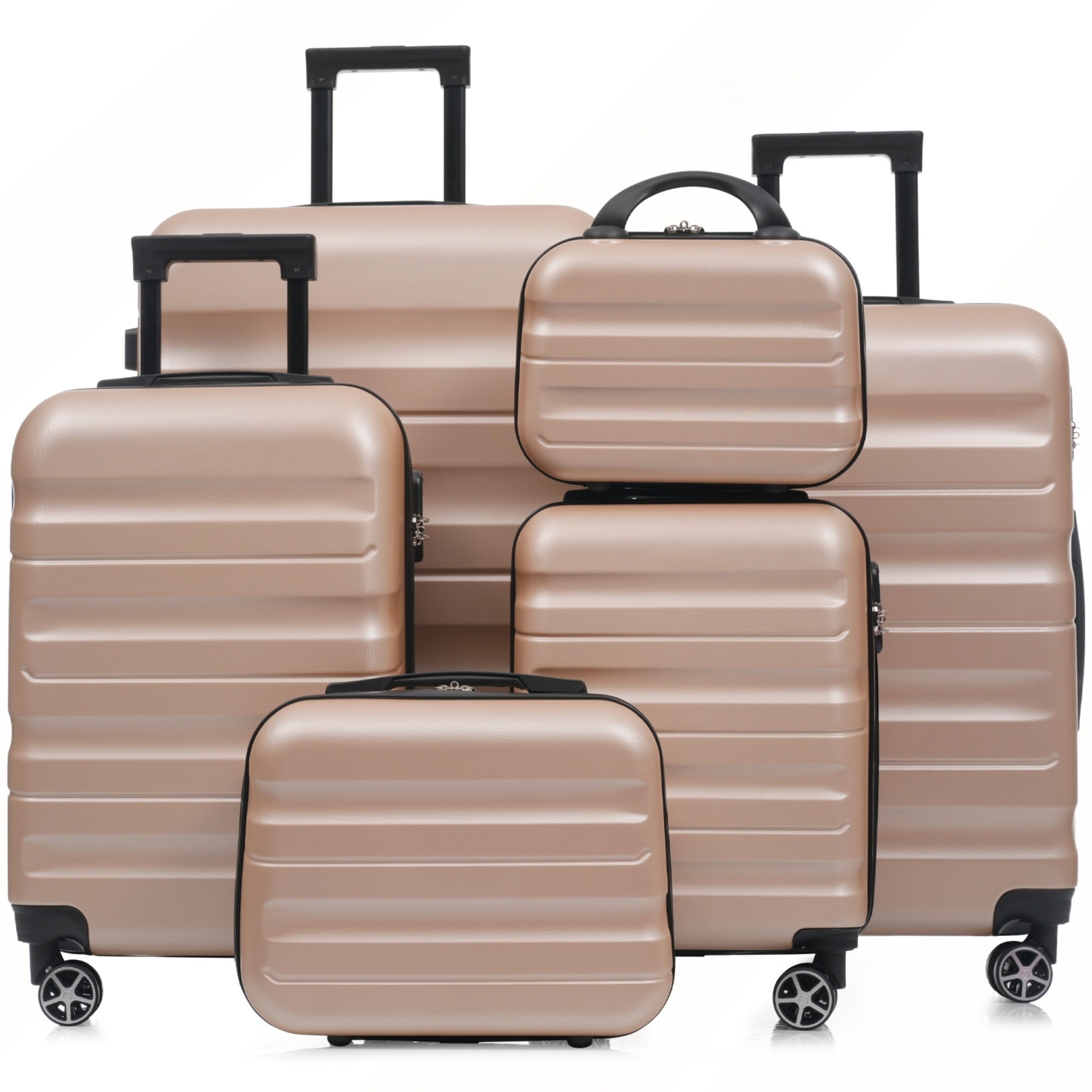 6-Piece ABS Hardshell Luggage Set with Dual Spinner Wheels for Travel and Business