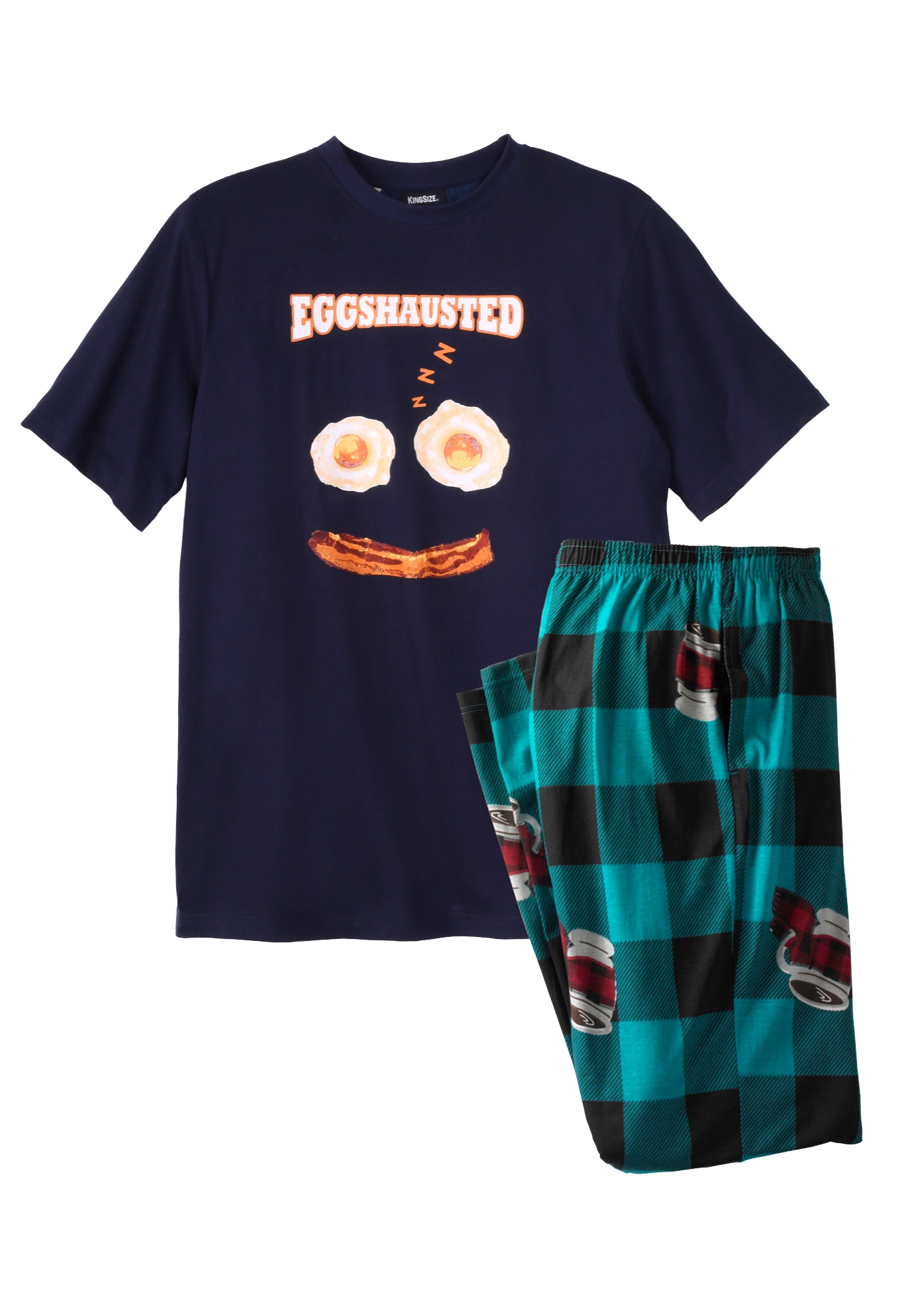 Men's Big & Tall Lightweight Cotton Novelty PJ Set by KingSize in Bacon And Egg (Size L) Pajamas