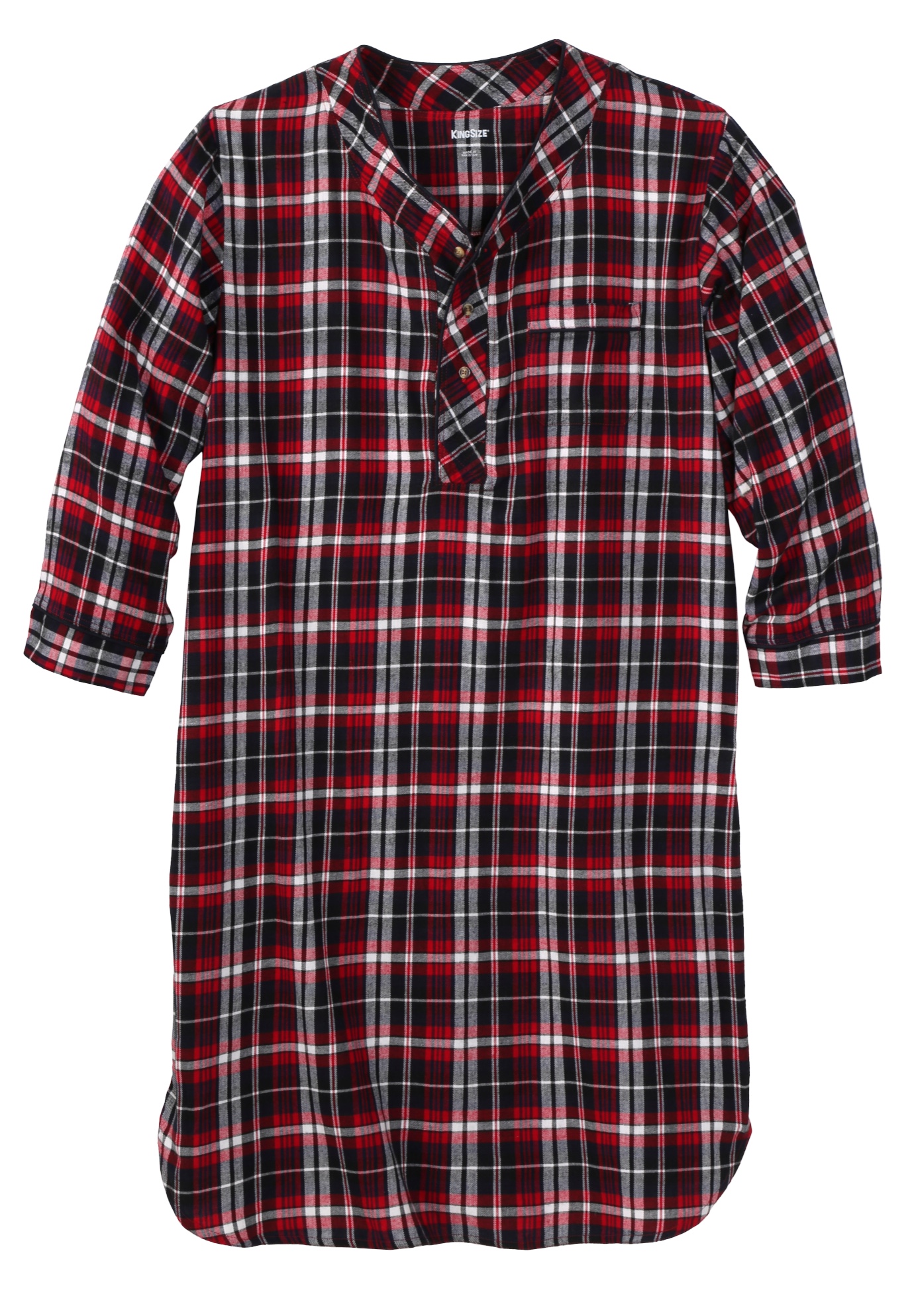 Men’s Big & Tall Plaid Flannel Nightshirt by KingSize in Festive Plaid (Size 7XL/8XL)