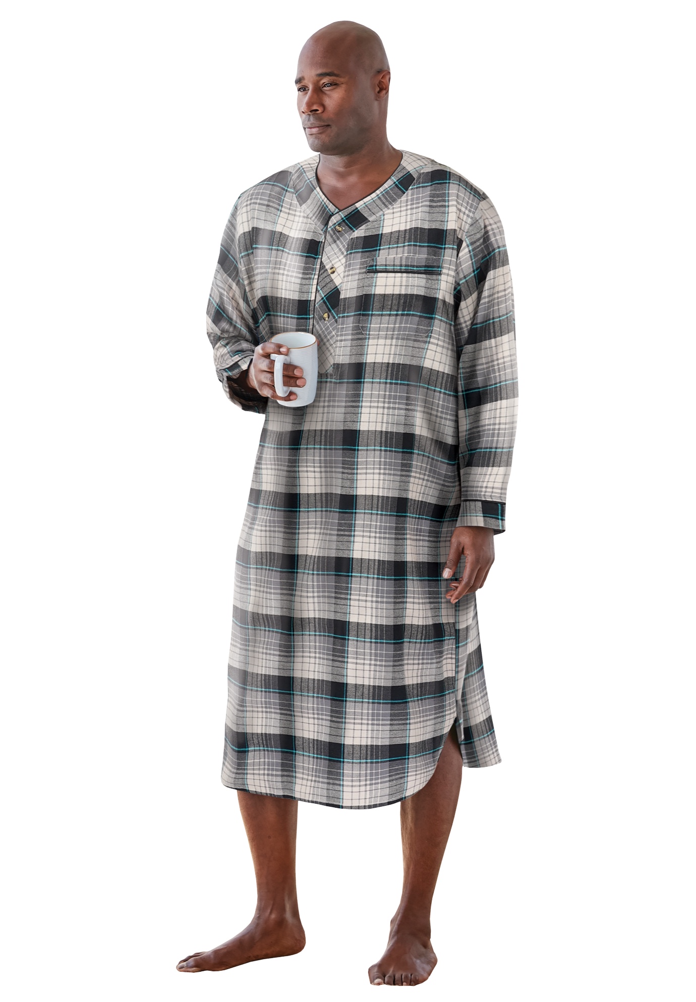 Men’s Big & Tall Plaid Flannel Nightshirt by KingSize in Grey Blue Plaid (Size 3XL/4XL)