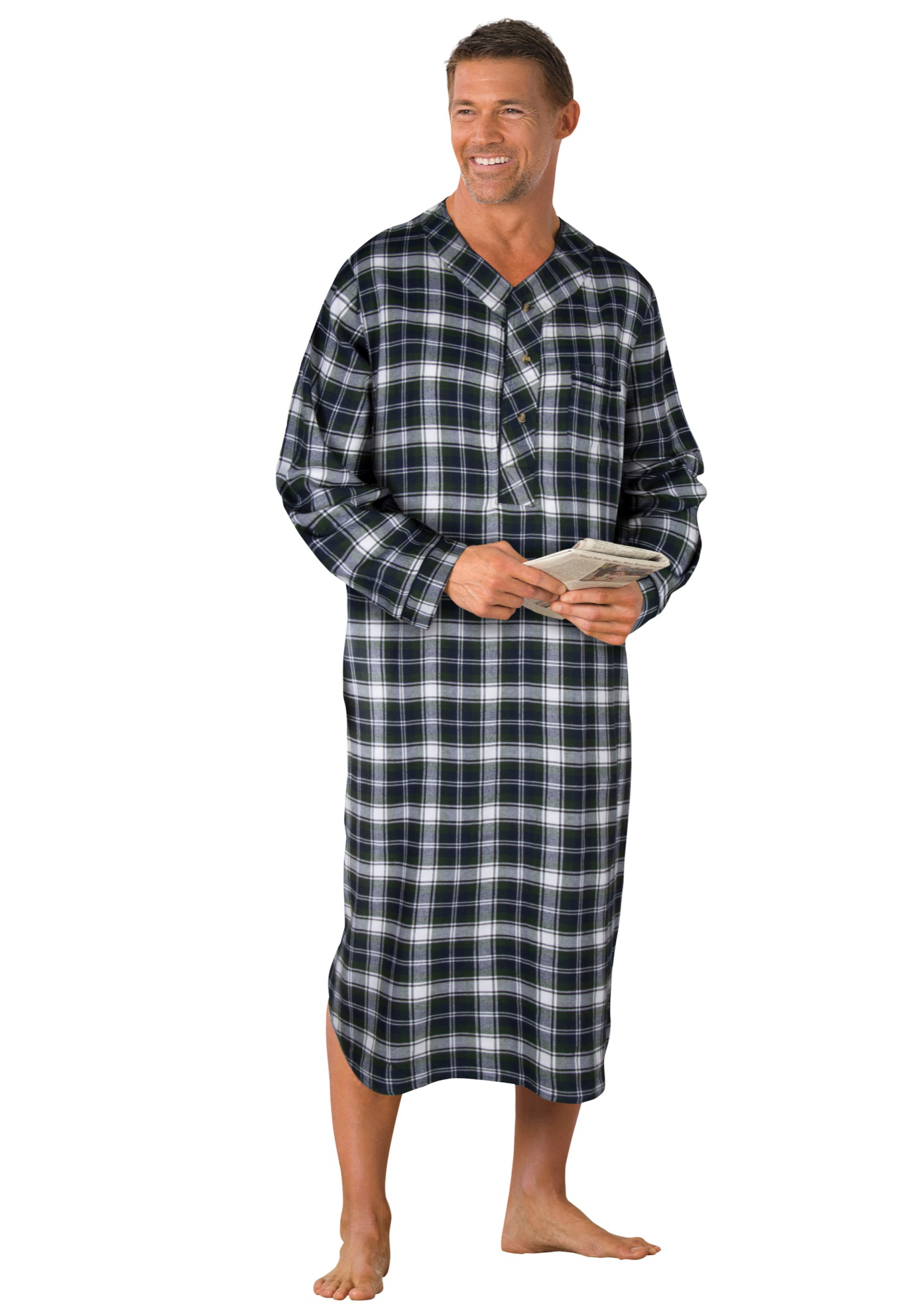 Men’s Big & Tall Plaid Flannel Nightshirt by KingSize in Hunter Blue Plaid (Size L/XL)