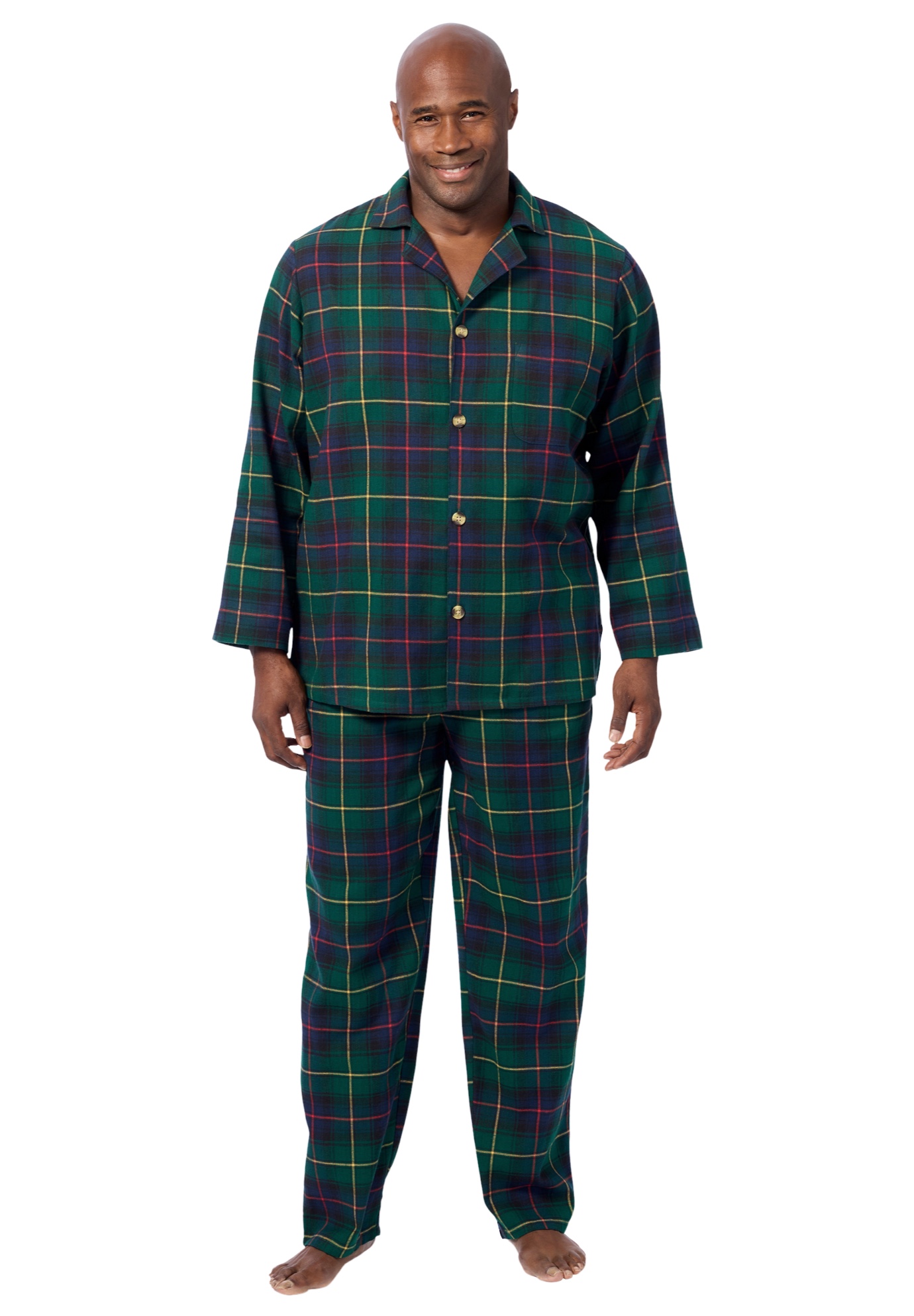Men’s Big & Tall Plaid Flannel Pajama Set by KingSize in Emerald Yellow Plaid (Size L)