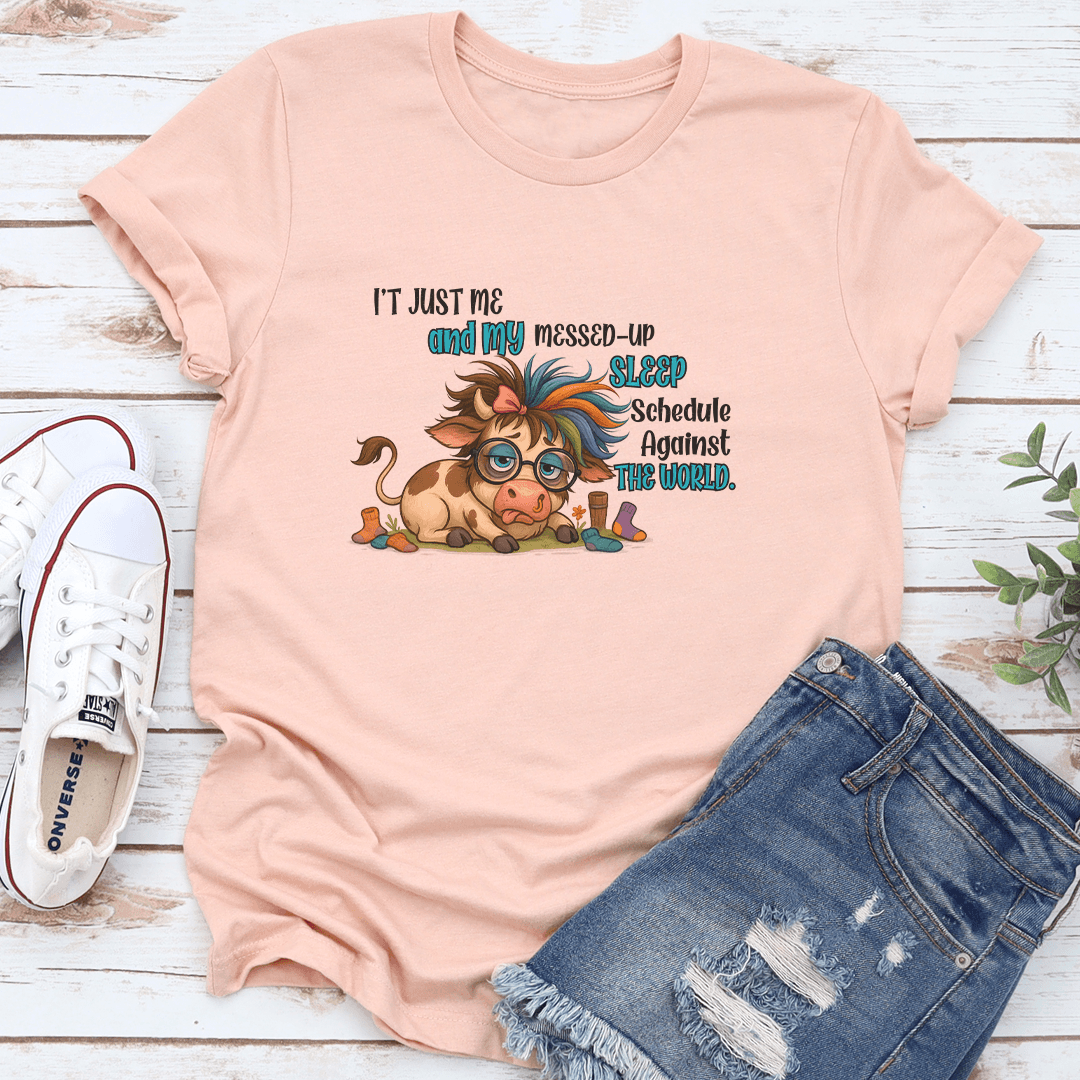 I't Just Me And My Messed Up Sleep Schedule Against The World Tee 2XL Heather Prism Peach