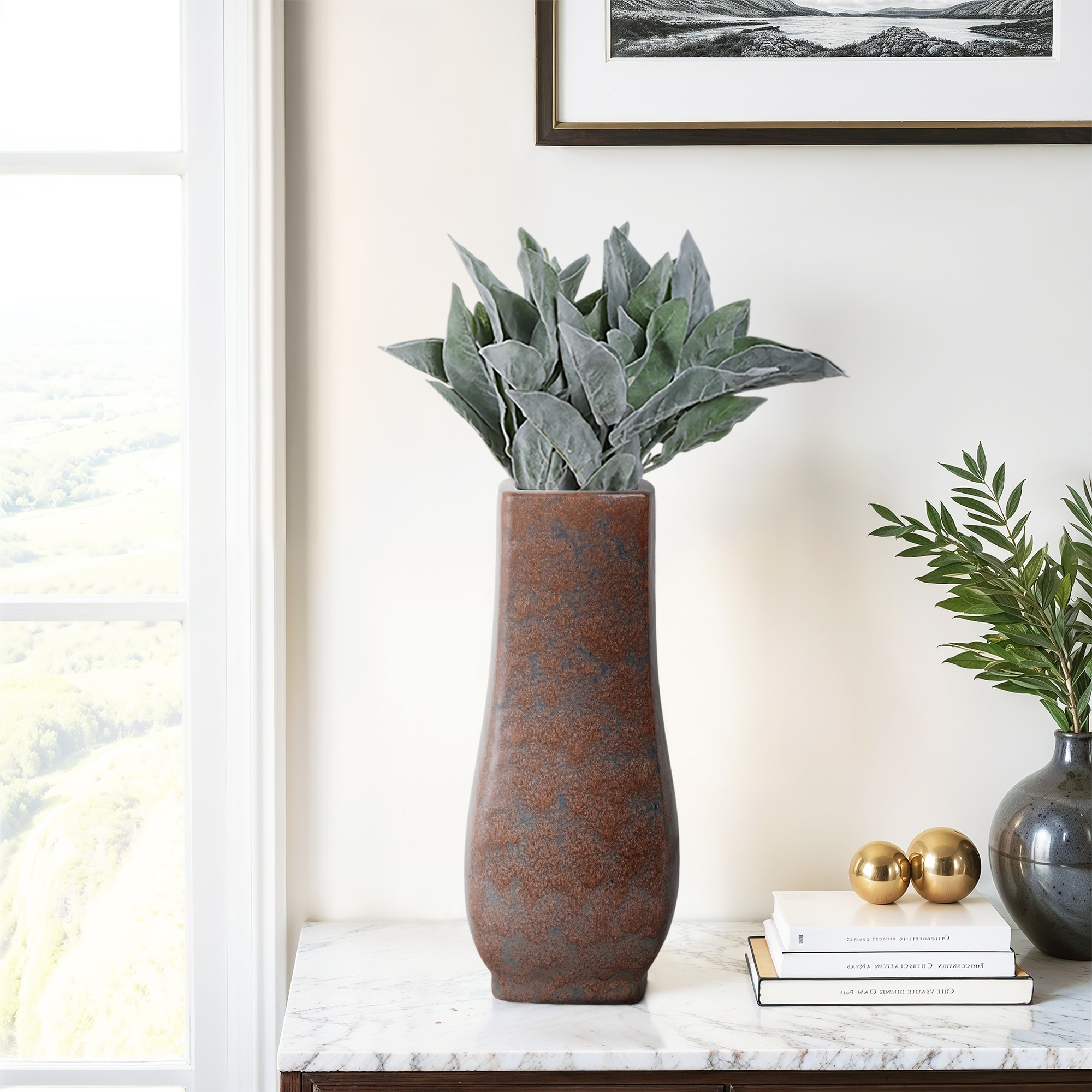 Geometric Ceramic Standing Vase - 13" - Elephant Gray