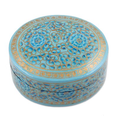 Blue Blossoms,'Blue Floral Papier Mache and Wood Oval Decorative Box'