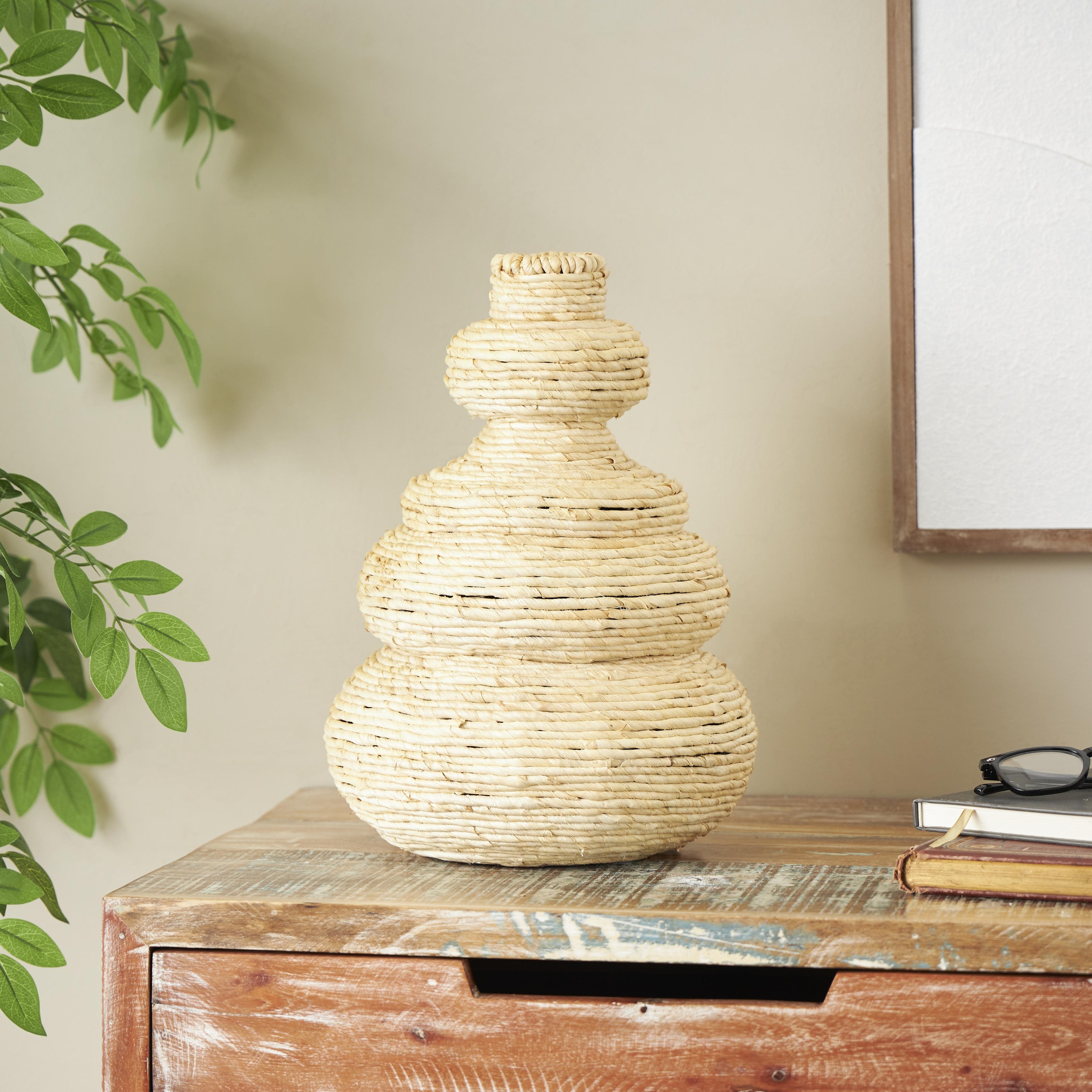 Small Mud Cylinder Vase with Jute Rope - 8.5" - Camel Brown