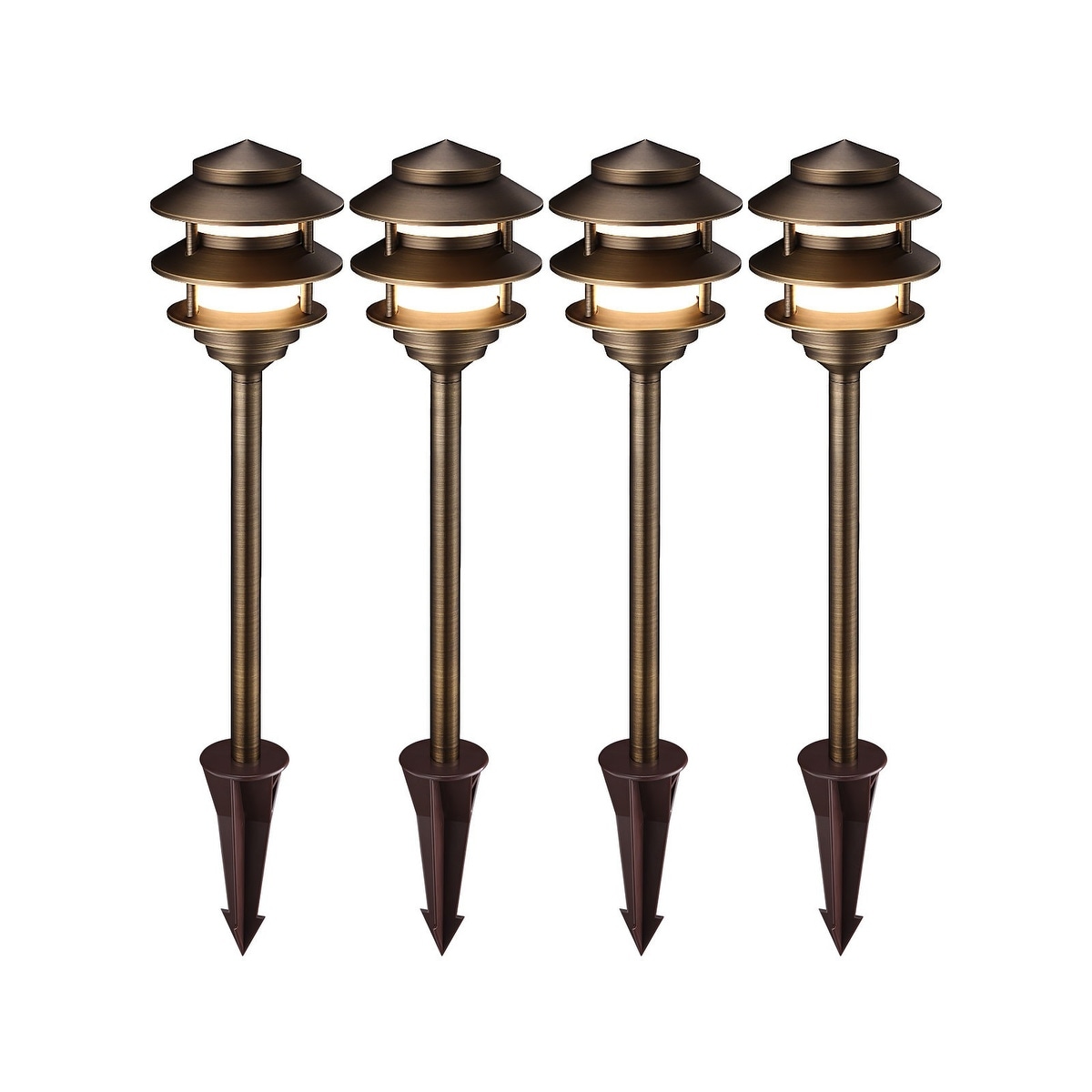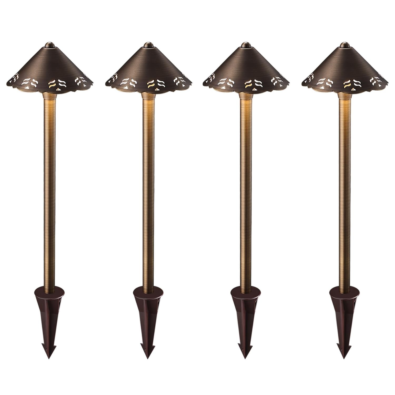 4 Pack Low Voltage Landscape Path Light, Solid Cast Brass, IP65, Bronze - 4 Pack