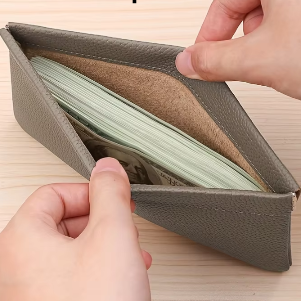 Genuine Cowhide Long Wallet & Document Holder Self Closing Versatile Storage For Passport Drivers License And More gray