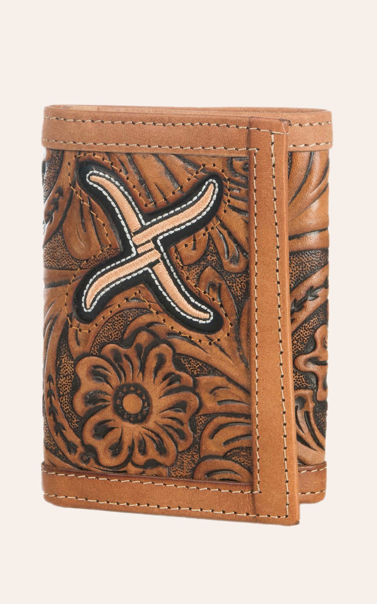 Twisted X Men's Natural Tooled Leather with Embroidered Inlay Tri-Fold Wallet - NOSZ - From Cavender's