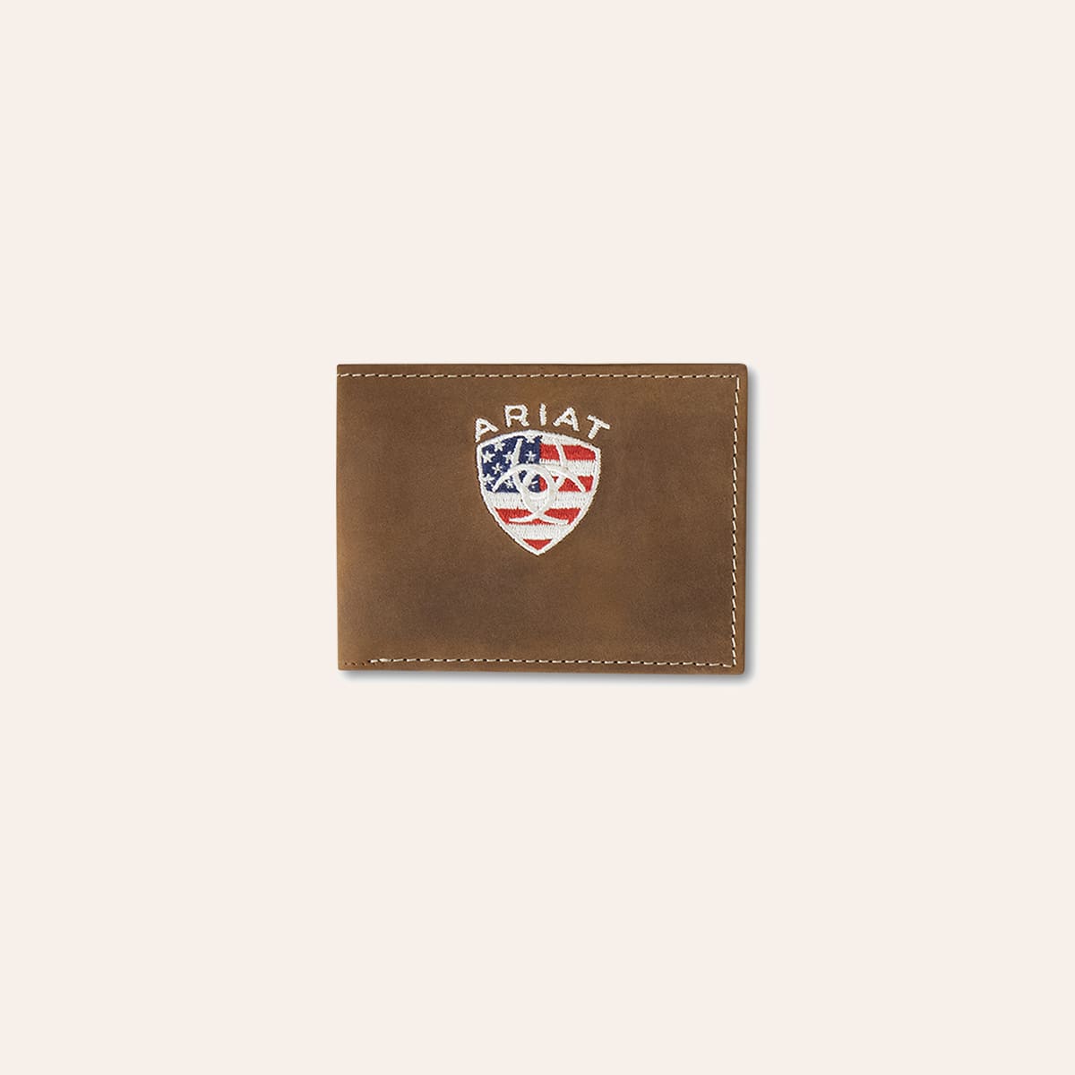 Ariat Tawny-Brown Leather & Flag Shield BiFold Wallet - NOSZ - From Cavender's