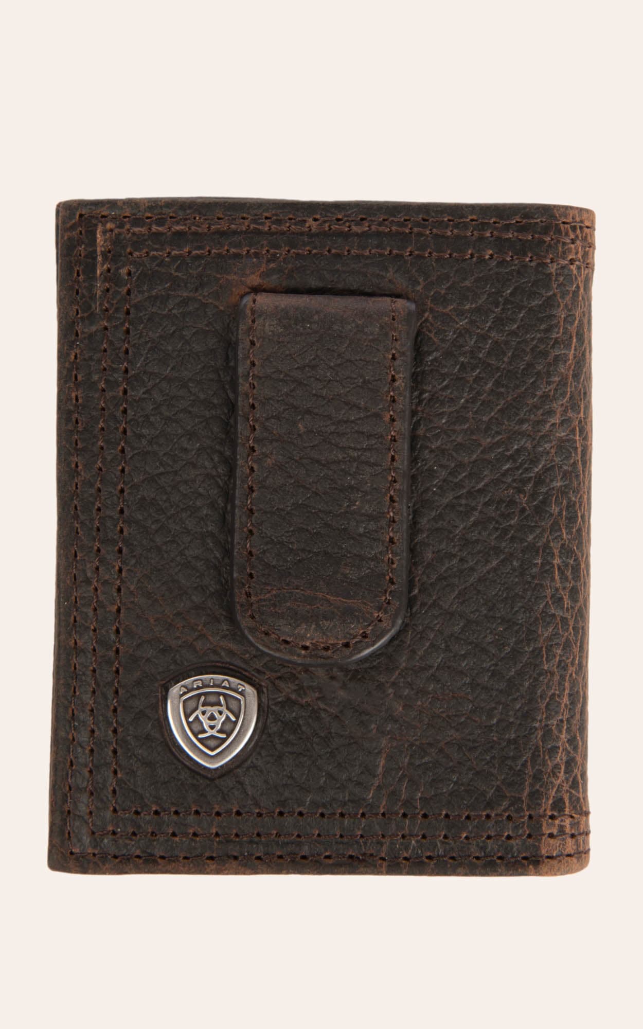 Ariat Performance Work Dark Brown Front Pocket Money Clip Bi-Fold Wallet - NOSZ - From Cavender's