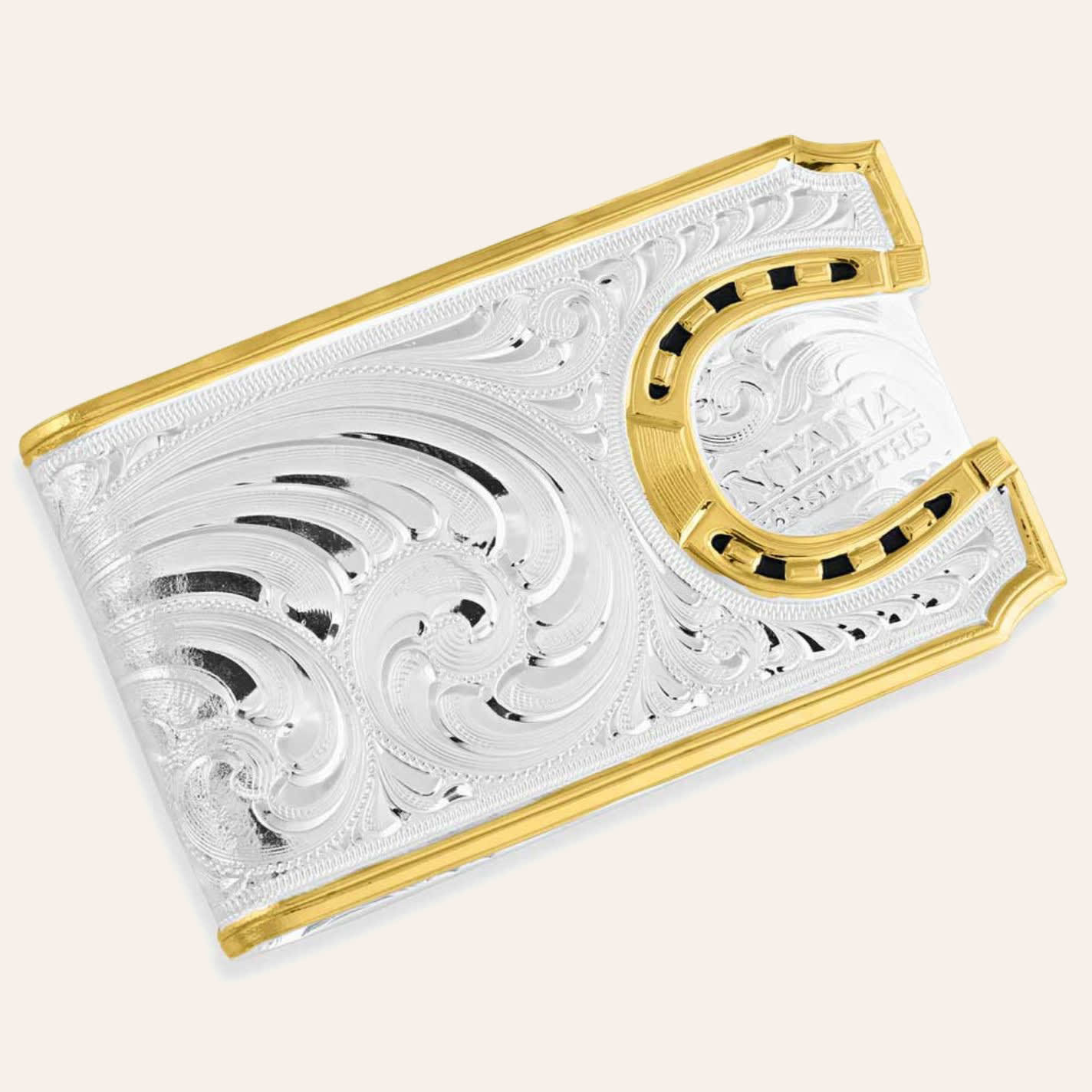 Montana Silversmiths Retro Silver Scrolling & Golden Horseshoe Money Clip - NOSZ - From Cavender's