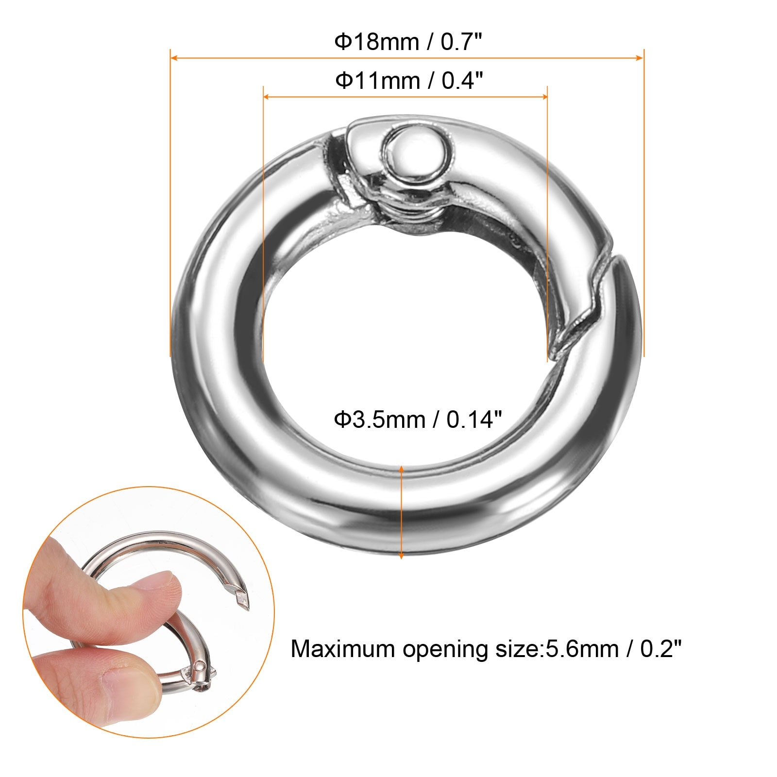 Metal Spring O Rings Trigger Spring Keyrings Buckle Round Snap Clip for Keychains Bag Purse Handbag - Silver