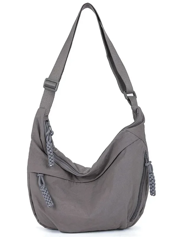 Nylon Crossbody Shoulder Bag For Women, Casual Half Moon Hobos Purse, Tote Chest Bag, Lightweight Travel Shopper Handba gray