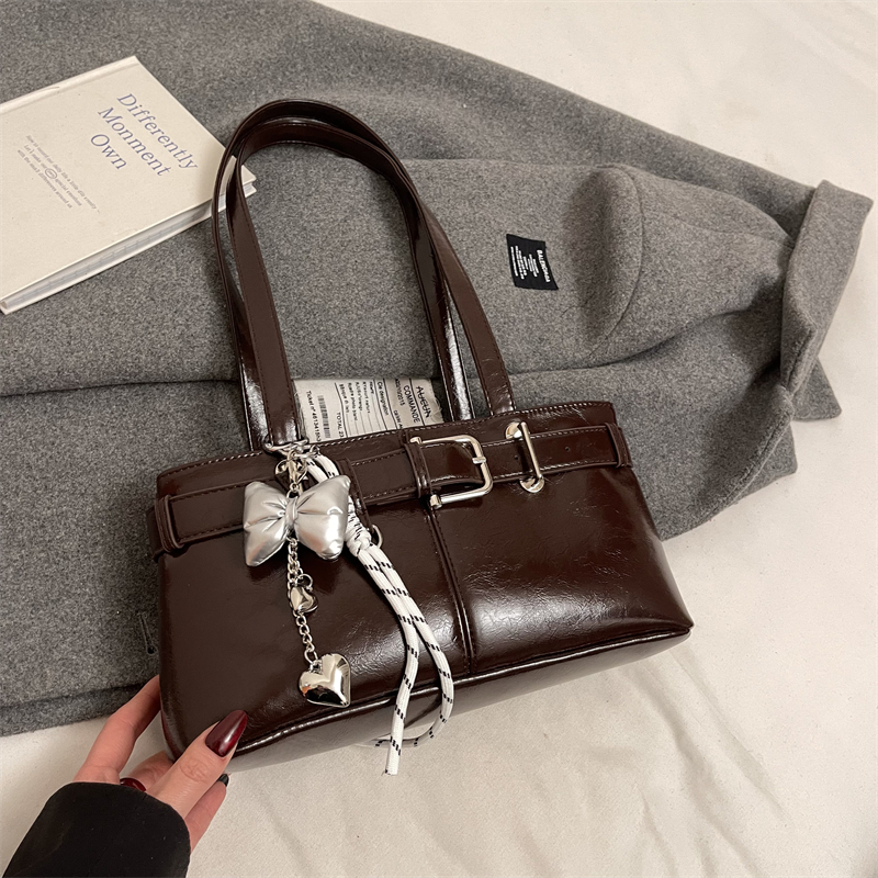Luxury 2025 Belt Buckle Design Shoulder Satchel For Women, Designer Tote Bag With Pendant coffee