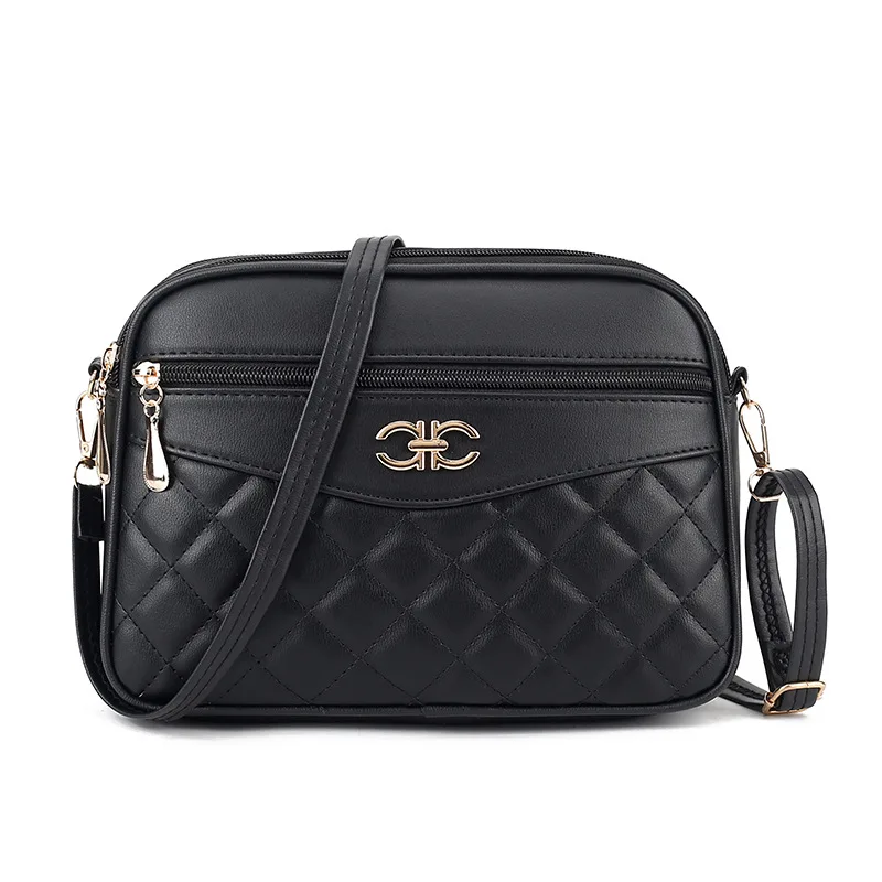 High Capacity Fashion Lingge Crossbody Shoulder Bag, Four Layer Handbag For Middle Aged Women, Camera Square Purse black