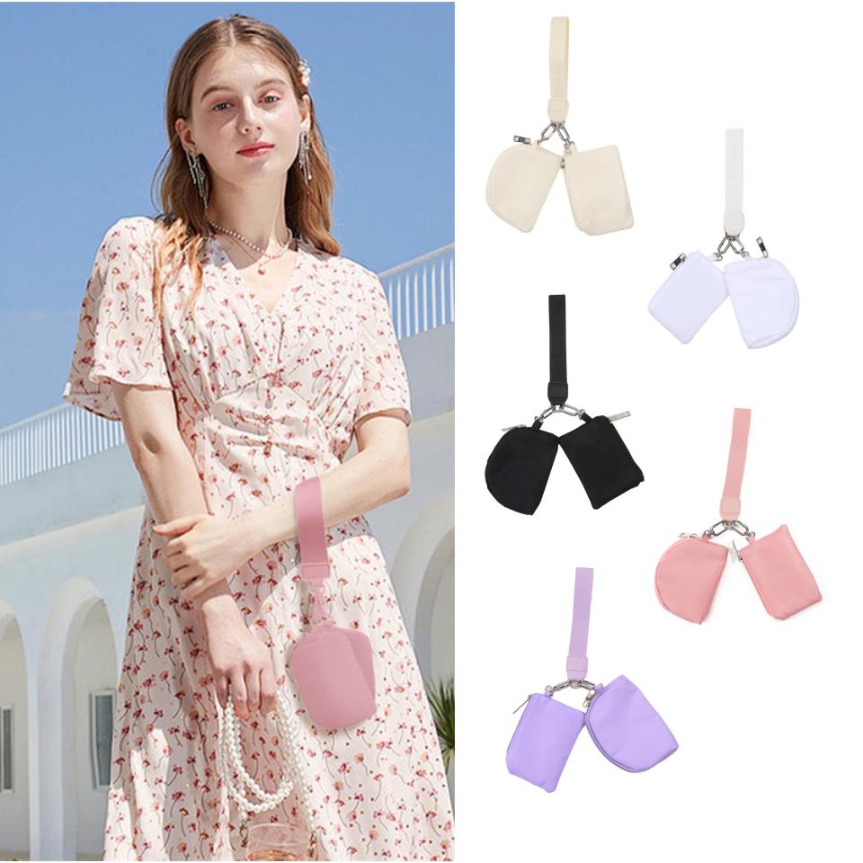 Lulu Wallet Double Wristlet Keychain, Mini Zip Around Wristlet, Coin Purse, Portable Wallet With Wristlet Strap beige