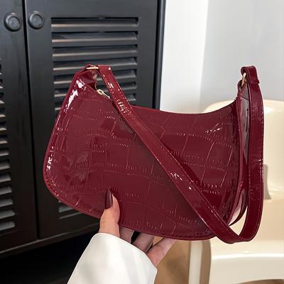 Women Leather Handbag, Noble Curve Casual Shoulder Bag, Stylish Sac A Main For Daily Use dark Pink
