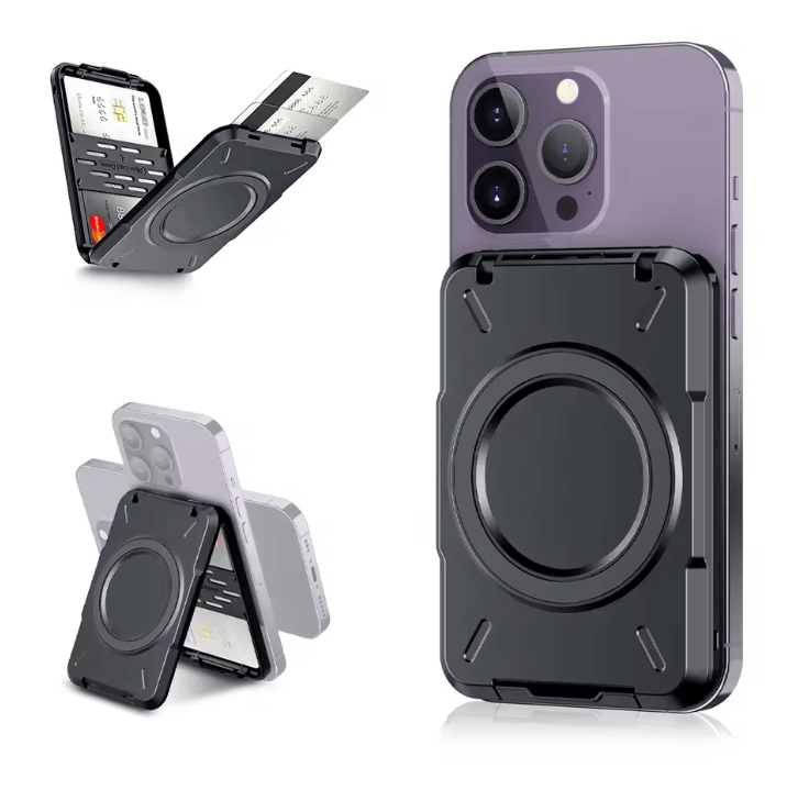 Magnetic Wallet Card Holder With RFID Blocking For IPhone black