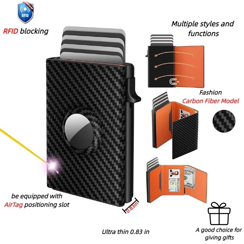 Mens Leather Slim Wallet, RFID Blocking Credit Card Holder With ID Window & Money Pocket carbon Fiber Black