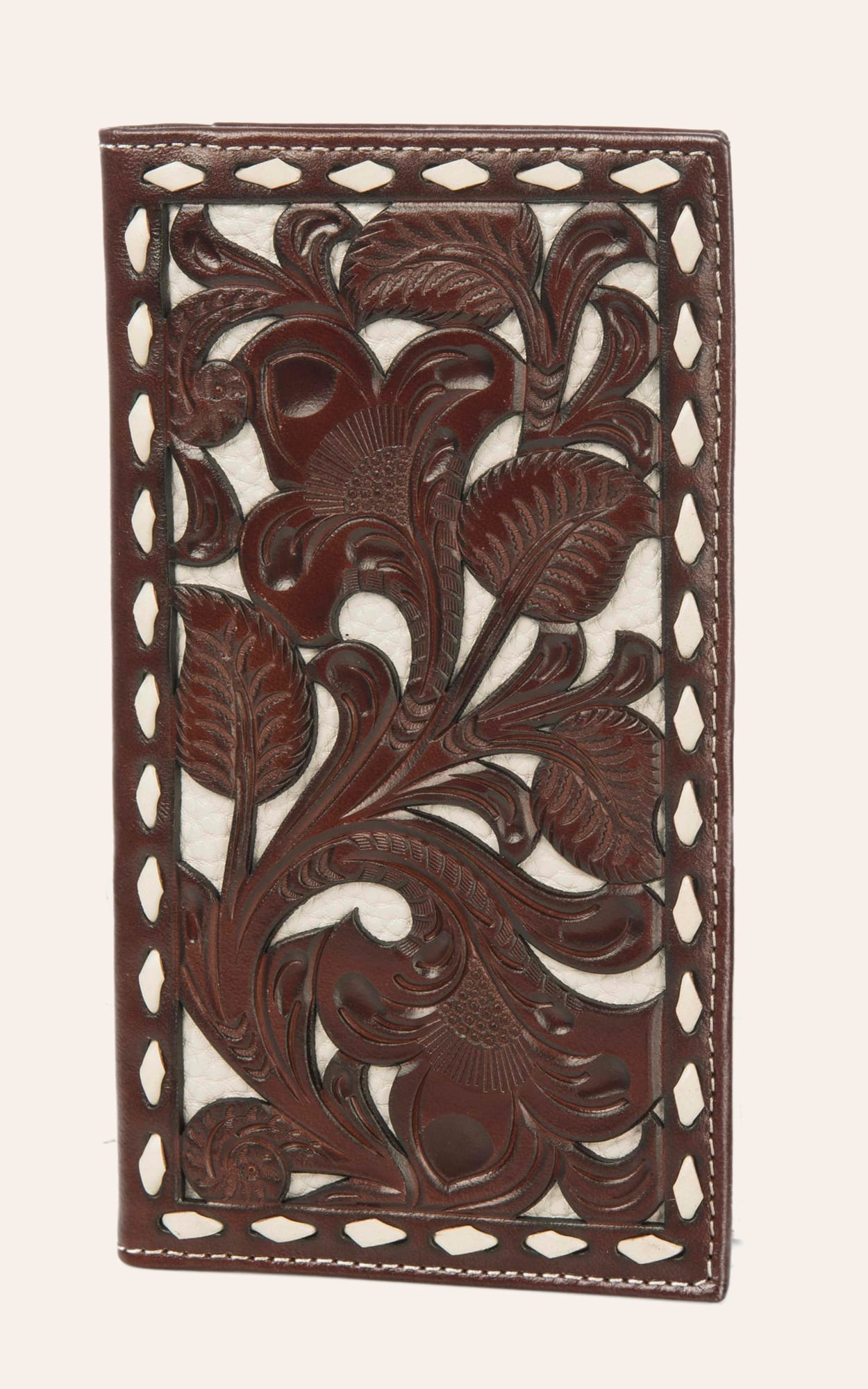 Nocona Brown & Ivory Tooled Overlay Rodeo Wallet / Checkbook Cover - NOSZ - From Cavender's