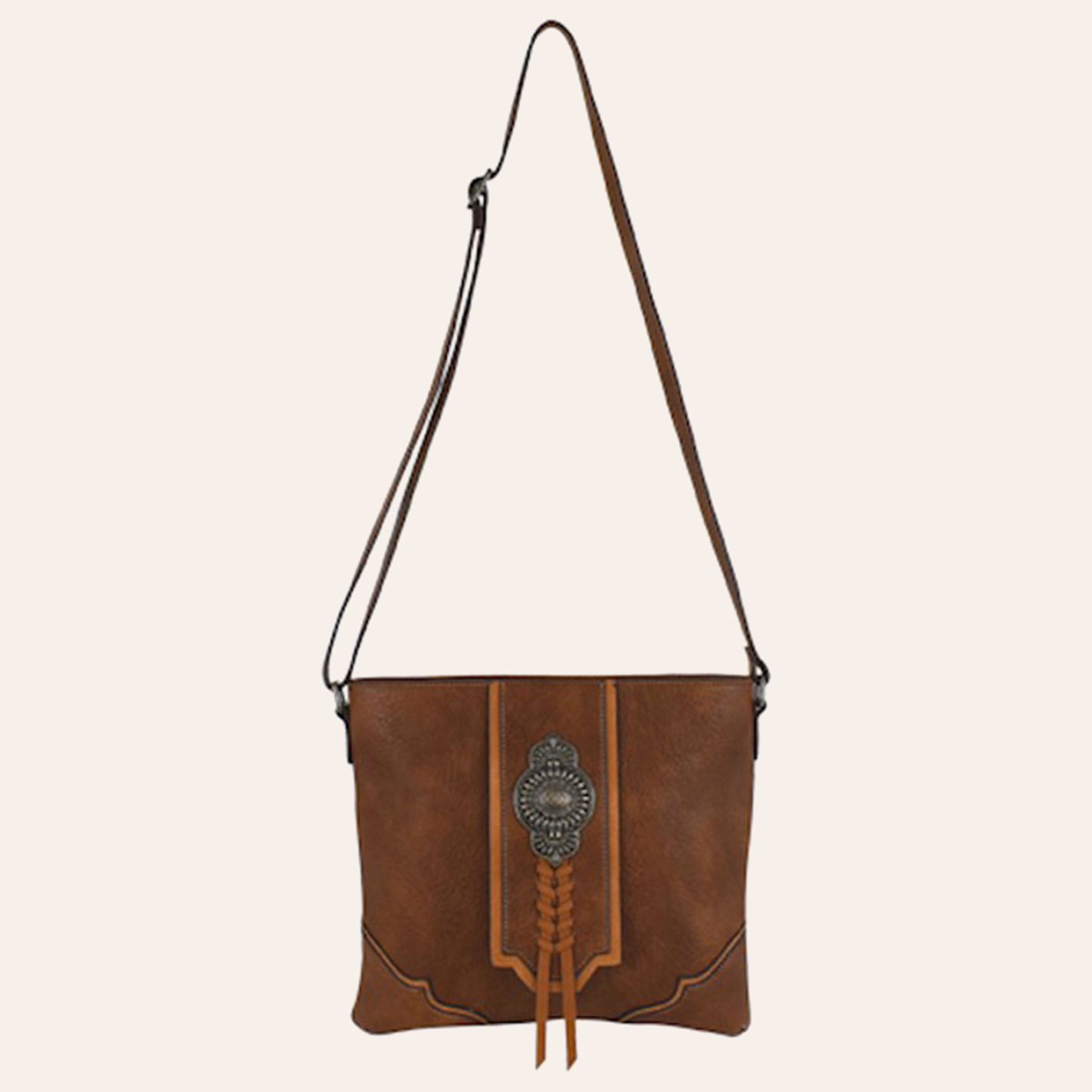 American Darling Brown Tooled Leather Fringed Crossbody Bag - NOSZ - From Cavender's - Women's
