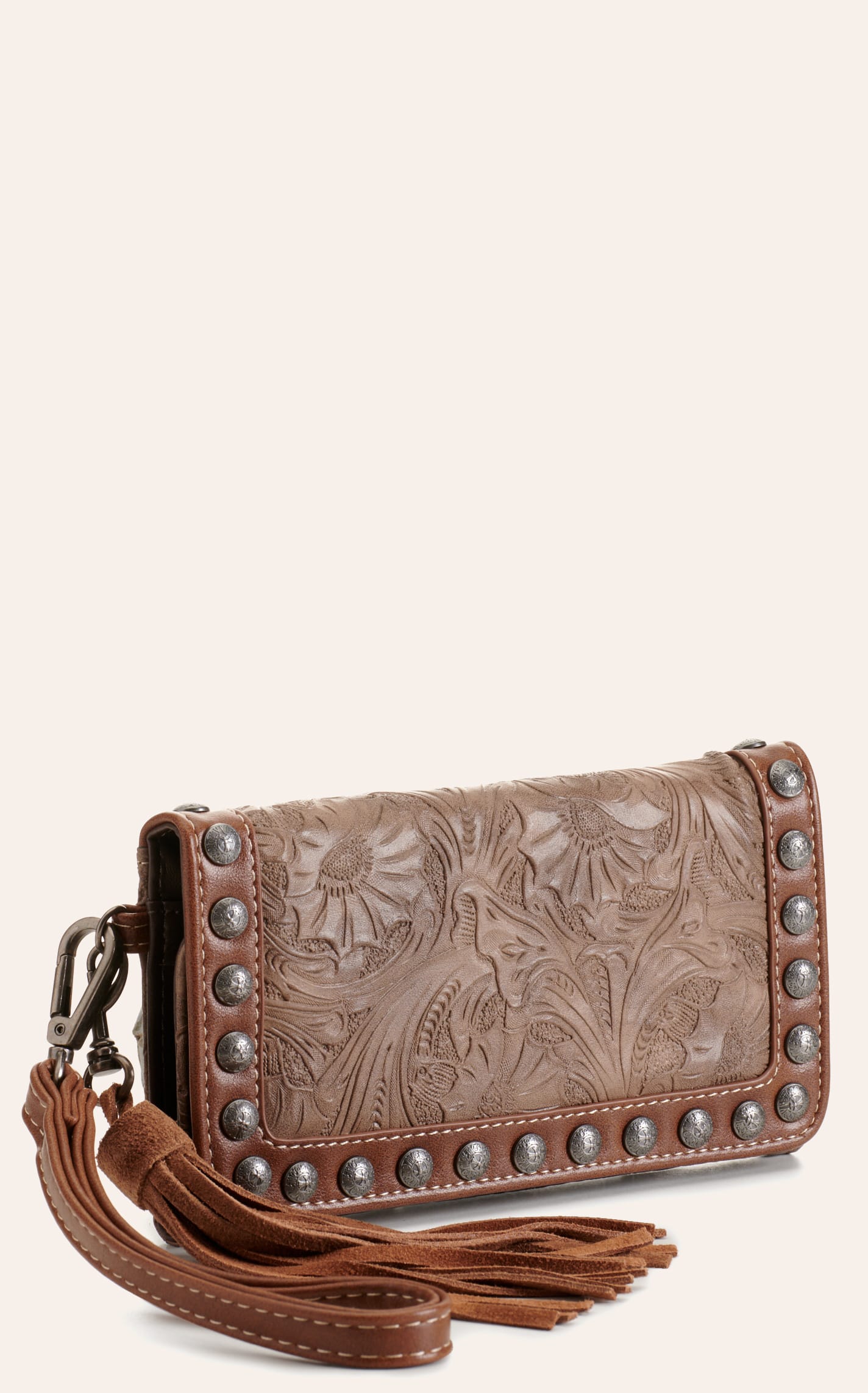 Blazin Roxx Ariana Brown Tooled with Tassel Studded Clutch Wallet - NOSZ - From Cavender's