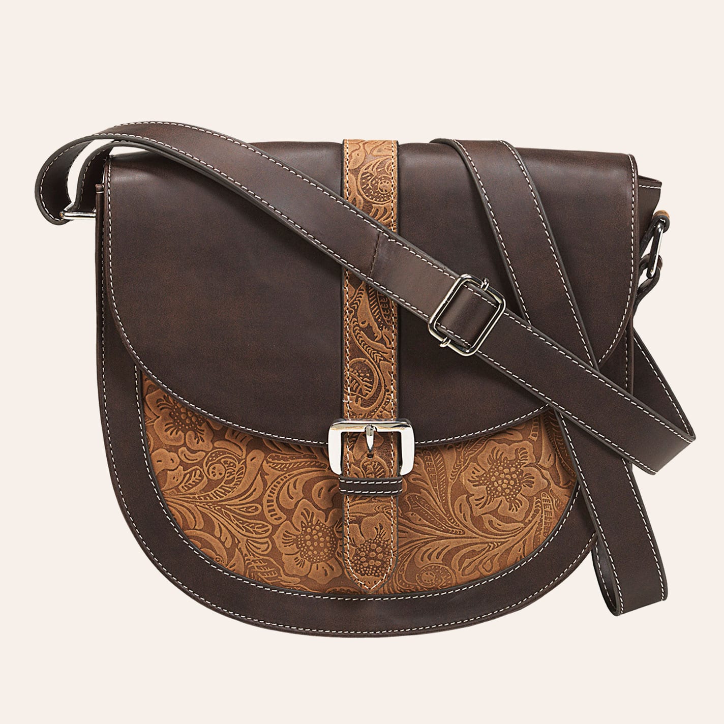 Nocona Brown and Tan Clara Tooled Leather Small Crossbody Saddlebag Purse - NOSZ - From Cavender's