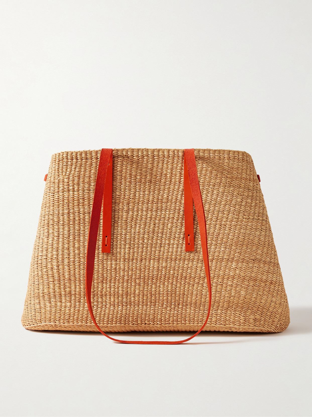 Muun Laura Leather-trimmed Woven Straw Tote - Brown