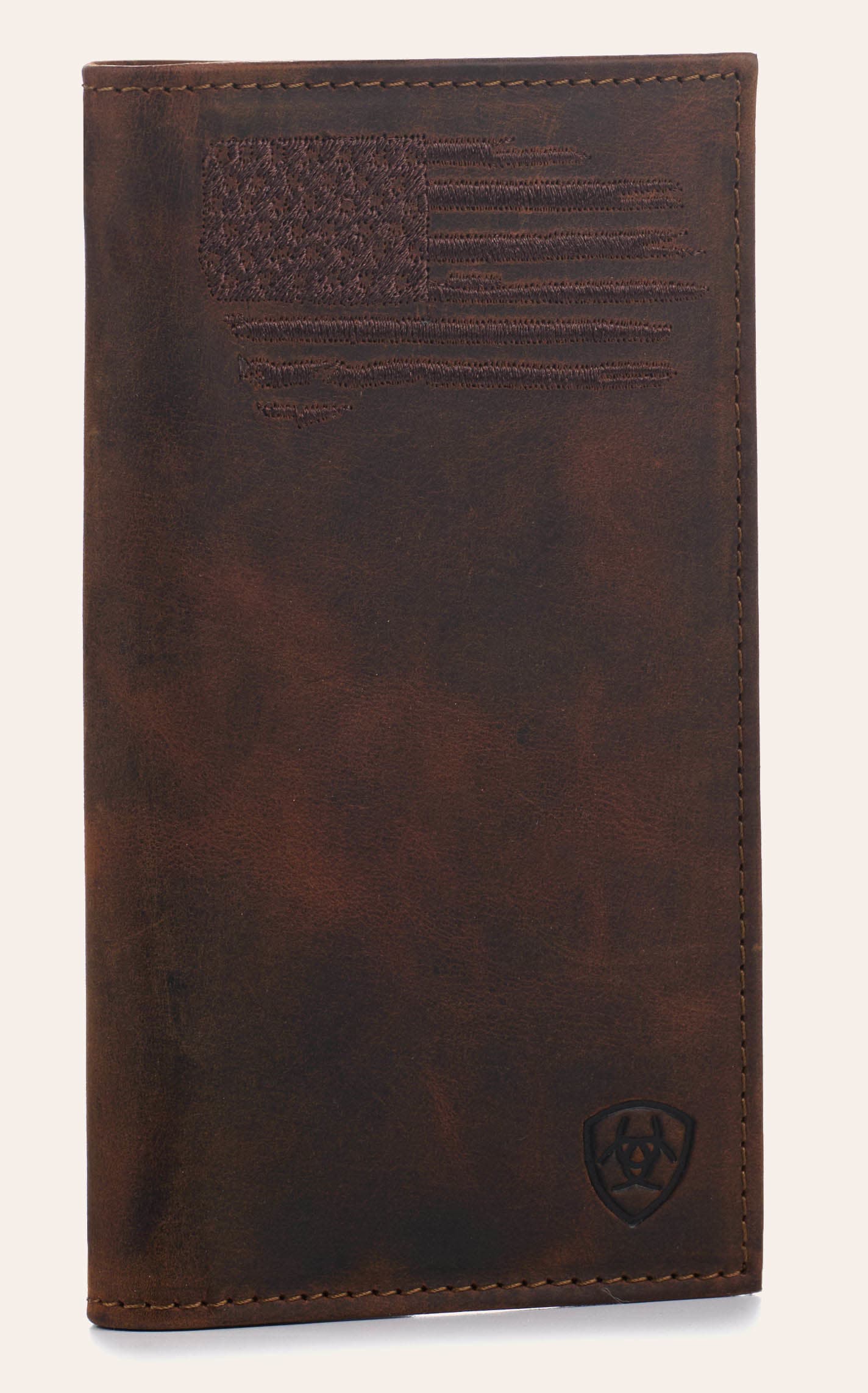 Ariat Men's Chocolate Flag & Shield Logo Rodeo Wallet - NOSZ - From Cavender's