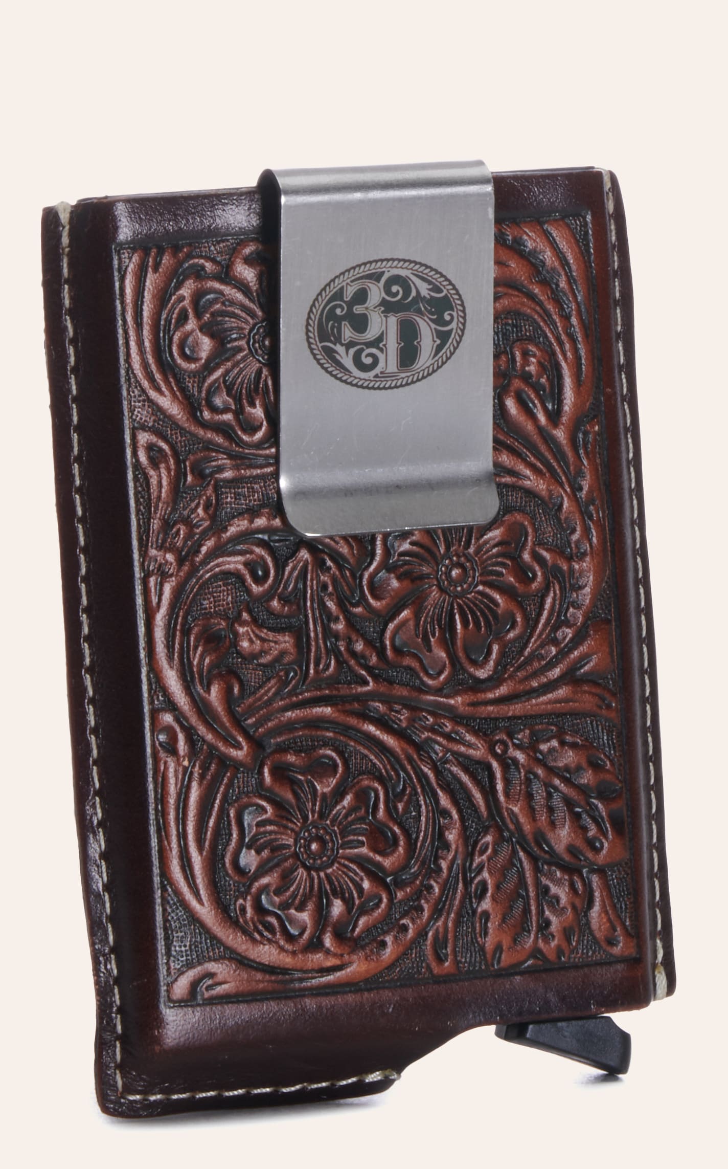 3D Men's Brown Tooled Leather with Aluminum Alloy Body and Money Clip Card Holder - NOSZ - From Cavender's