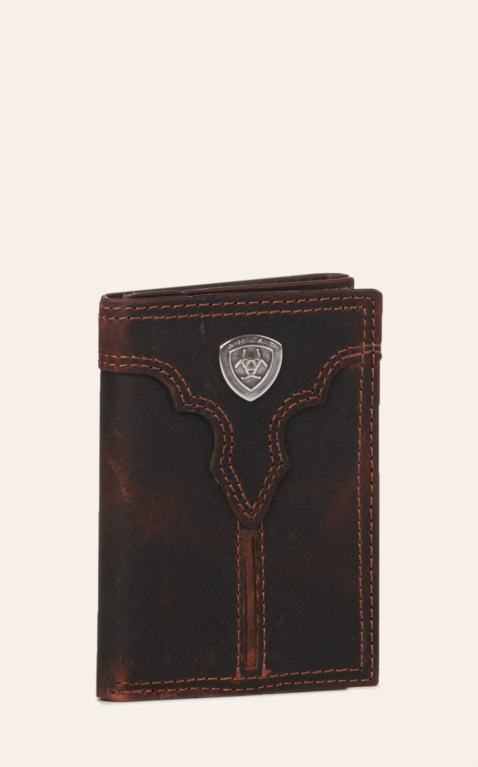 Ariat Men's Brown Center Seam Leather Tri-Fold Wallet - NOSZ - From Cavender's