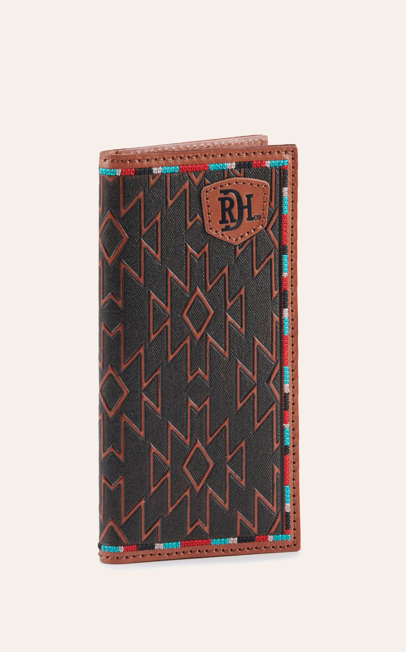 Red Dirt Hat Co. Brown Leather with Colorful Aztec Stitching Rodeo Wallet - NOSZ - From Cavender's