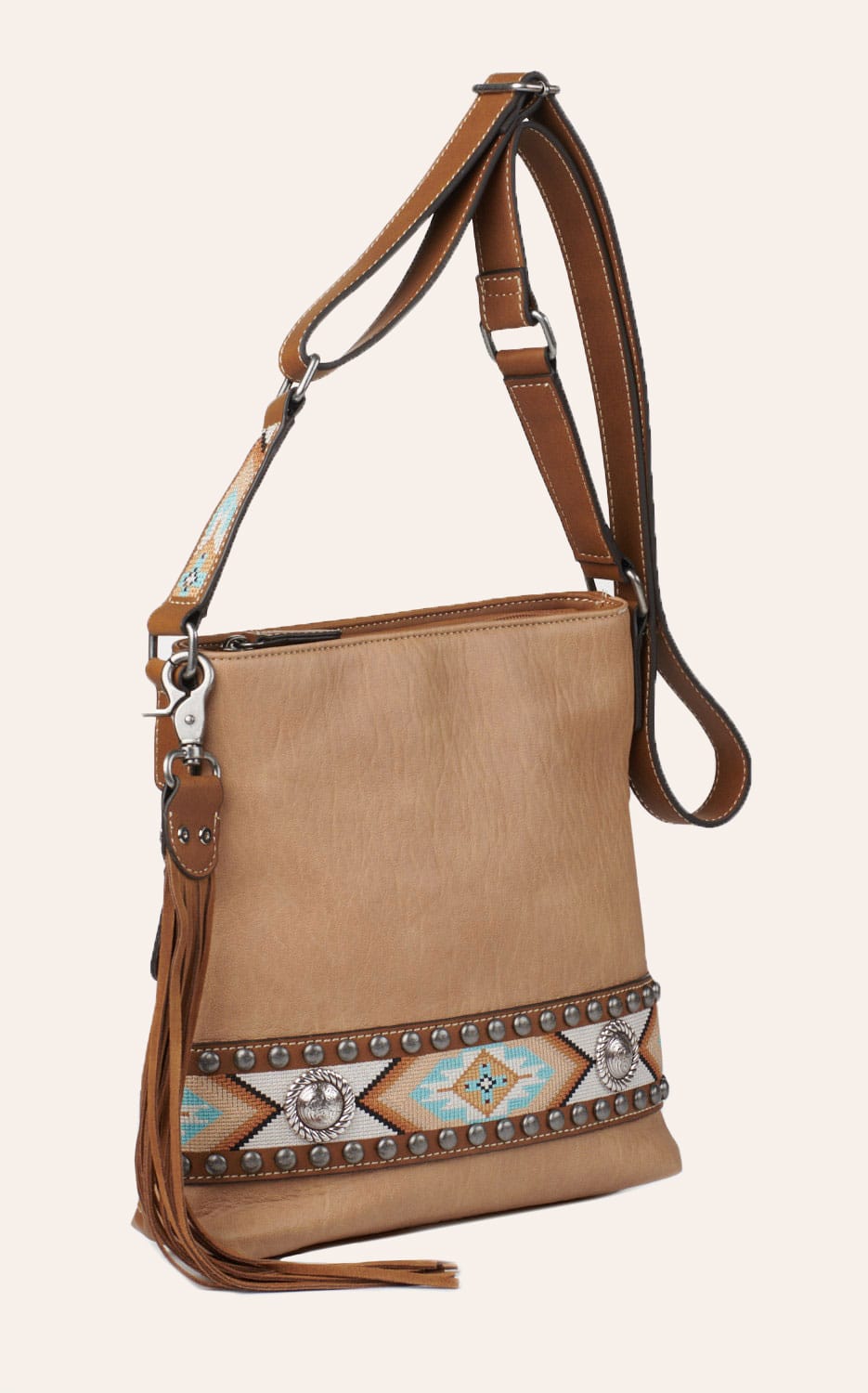Nocona Carmen Tan with Southwest Stitching and Conchos Concealed Carry Crossbody Handbag - NOSZ - From Cavender's