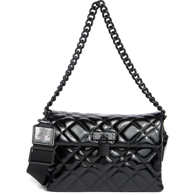 Brixton Lock Drench Leather Bag - Black - Kurt Geiger Shoulder Bags