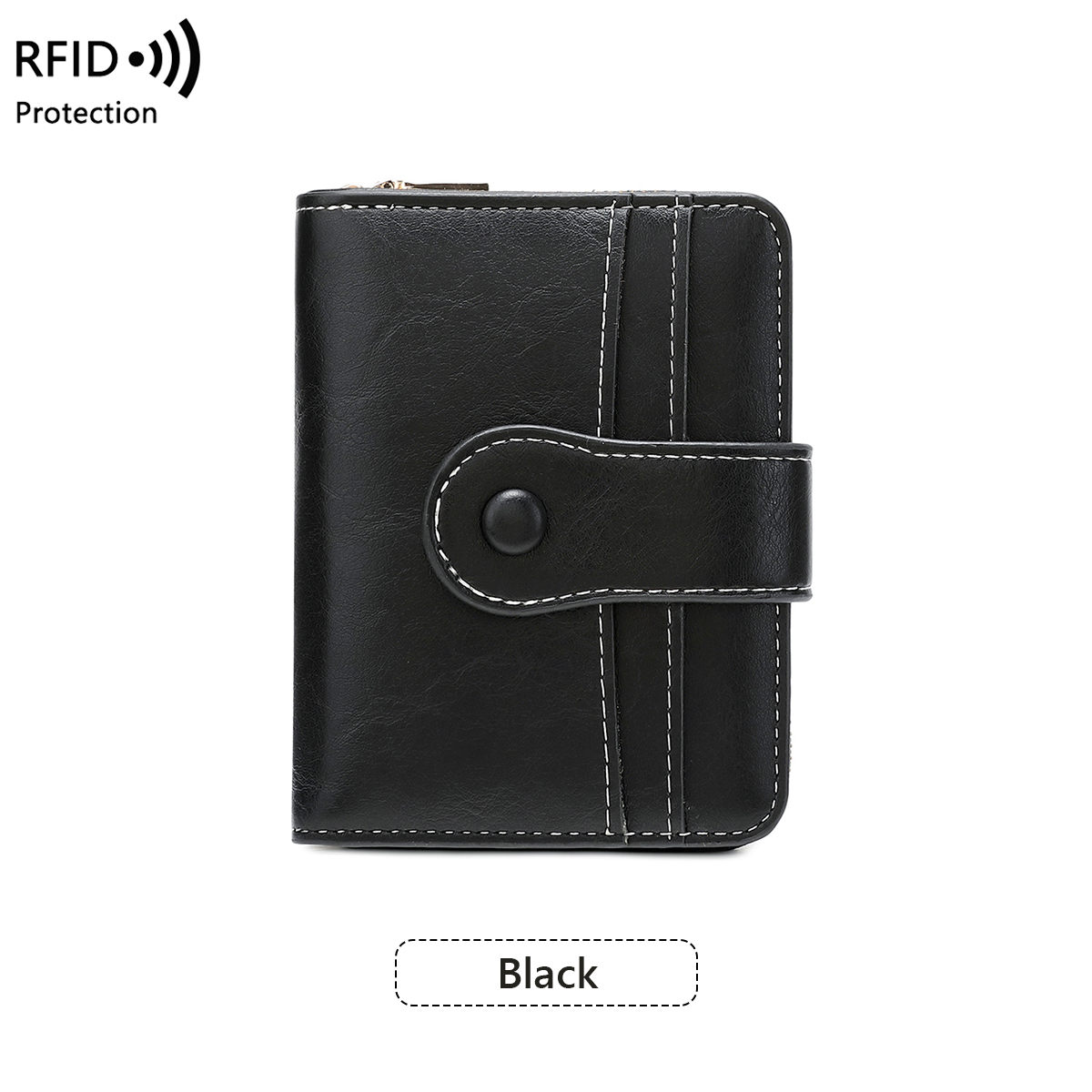 Women RFID Blocking Wallet, Zipper Buckle Multi Card Holder, Retro Short Coin Purse, Compact Functional Design black