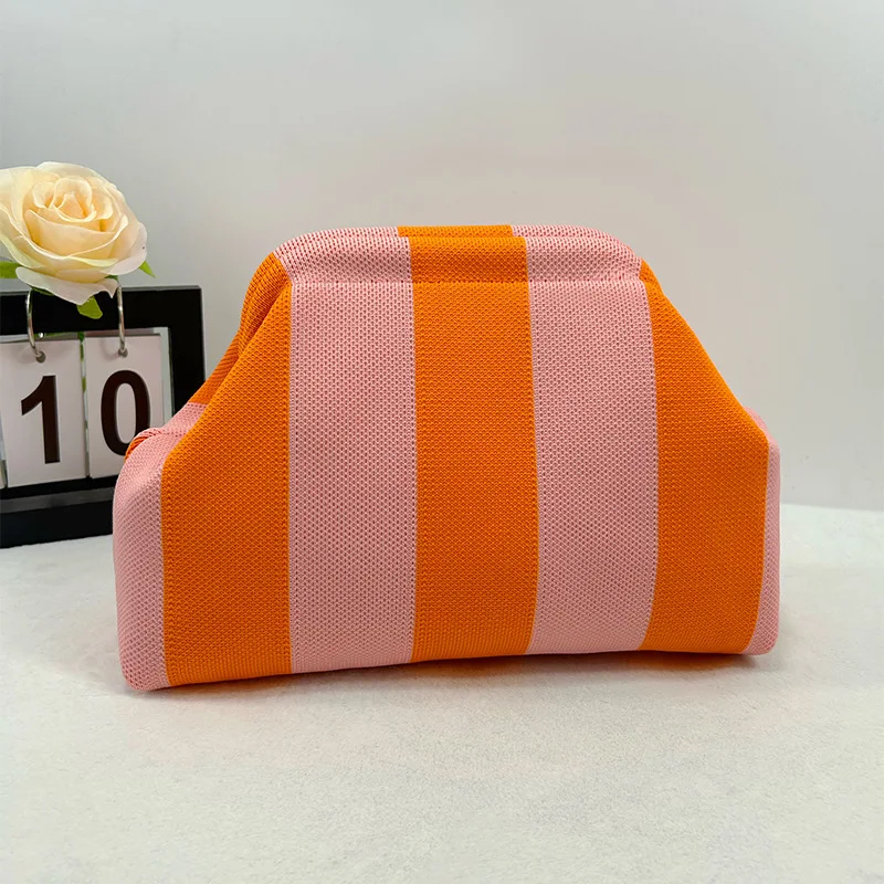Contrast Crochet Handbag, Women Knit Stripe Purse, Summer Beach Clutch, Colorblock Dumpling Bag For Travel And Casual 1
