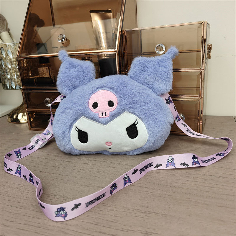Sanrio Plush Cinnamoroll & Kuromi Women Tote Handbag, Kawaii Fashion Female Messenger Bag & Shoulder Purse For Girls blue