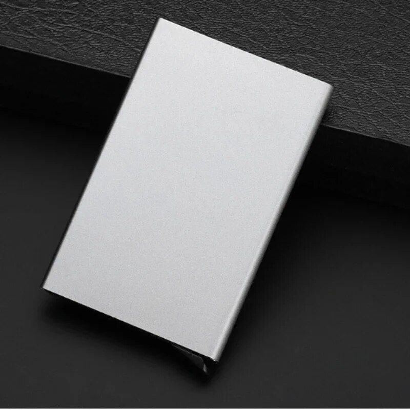 RFID Card Holder: Slim Aluminum Wallet For Automatic Pop Up ID Credit Cards Grey