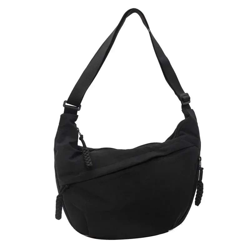 Trendy Soft Cloth Crossbody Bag For Women, Big Solid Color Student Casual Shoulder Hobo Handbag black
