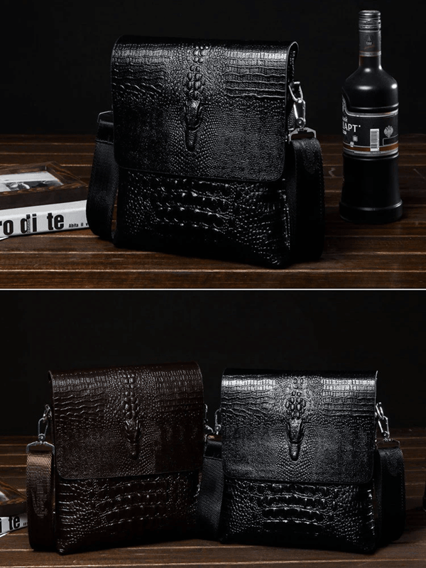 Mens Leather Messenger Bag Business Crossbody Satchel With Crocodile Grain brown