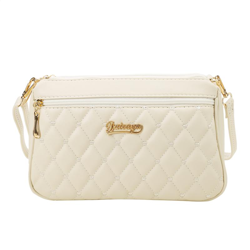 Elegant Embroidered Messenger Bag Stylish Women Leather Shoulder Handbag With Charm Accent small White