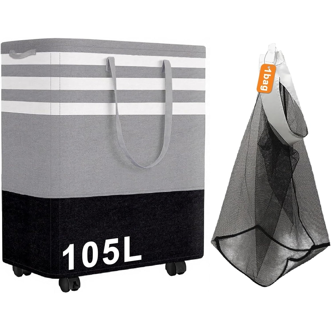Large Laundry Basket, Laundry Hamper with 4 Wheels, Collapsible Waterproof Clothes Basket, Freestanding Hamper with Handles