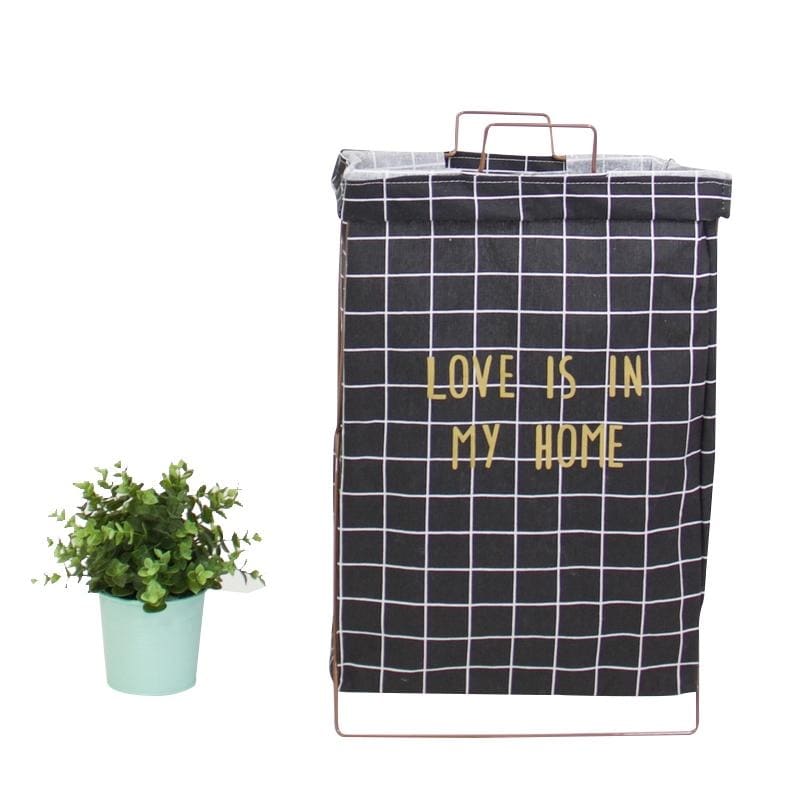 G Home Collection Wire Fold Laundry Hamper Black Check with Letters