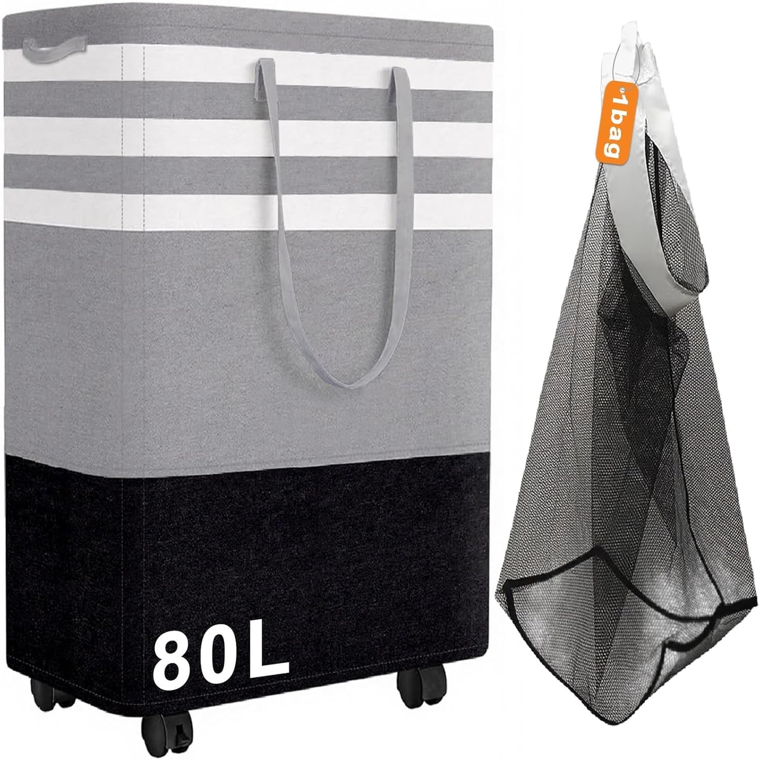 Large Laundry Basket, Laundry Hamper with 4 Wheels, Collapsible Waterproof Clothes Basket, Freestanding Hamper with Handles