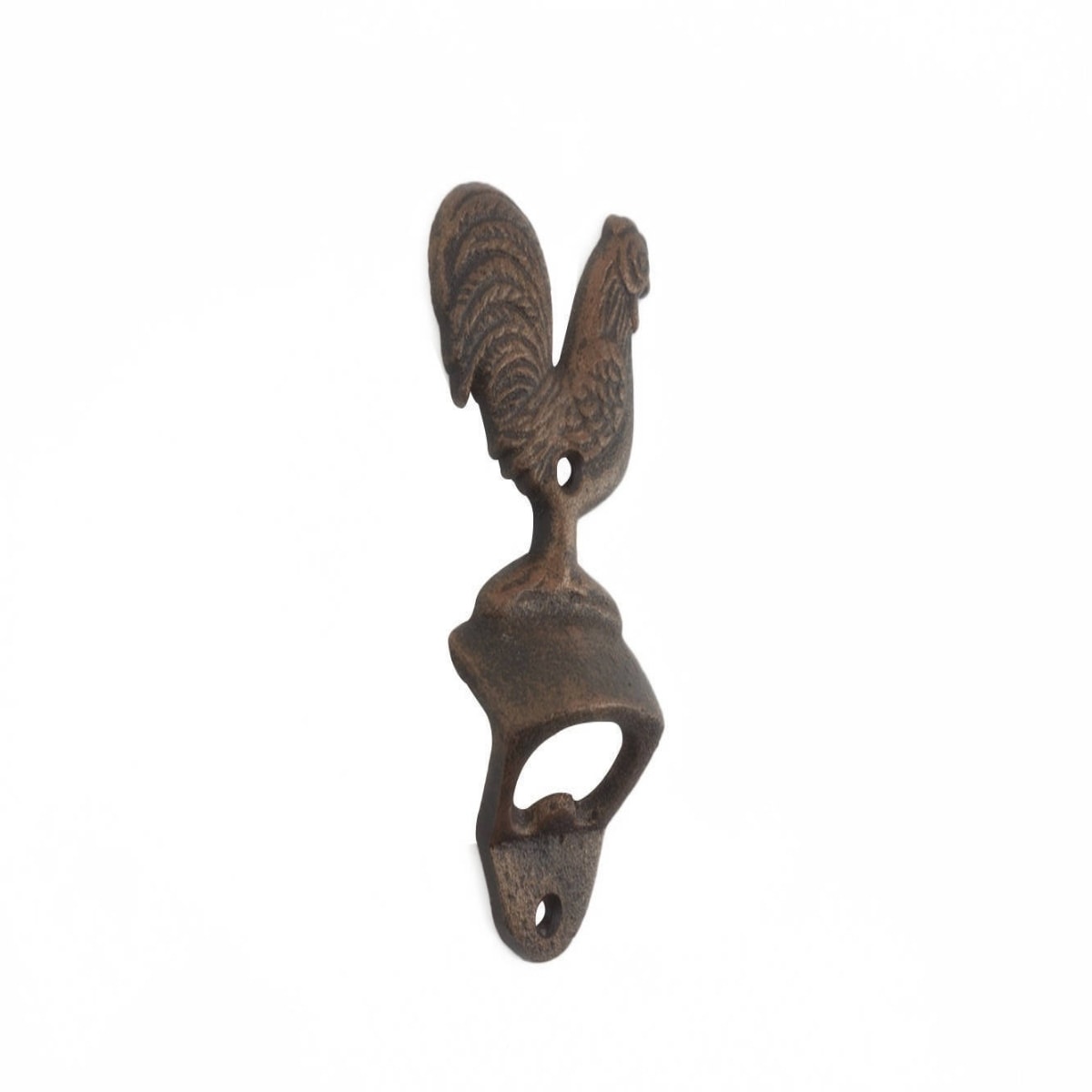 6" Decorative Rooster Bottle Opener Copper Cast Iron Vintage Wall Mount Farmhouse Bar Decor - 3" L x 1" W x 6" H
