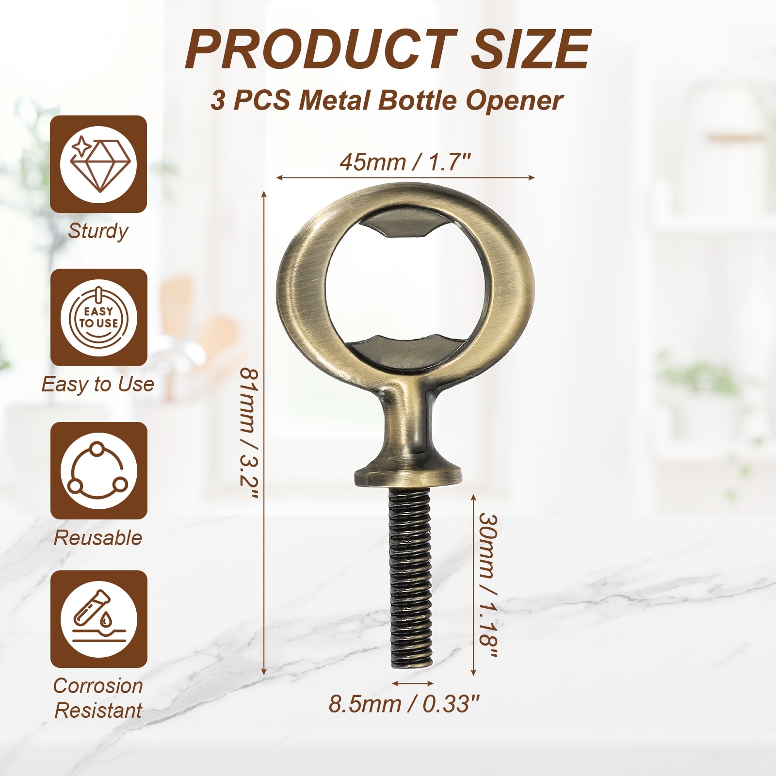 Bottle Opener Zinc Alloy Screw Beer Opener, Flat Inserts Kit Threaded Hardware - 80mm