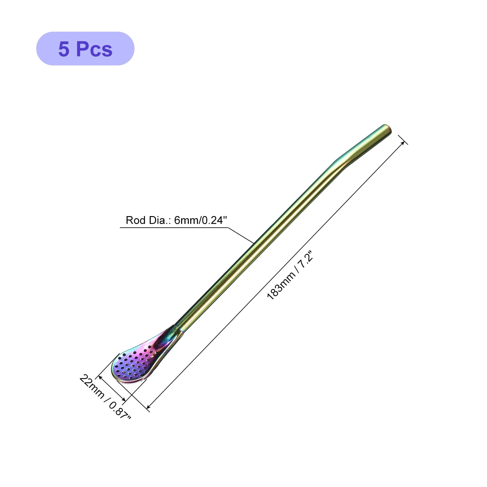 5Pcs 7.2" Stainless Steel Spoon Straw Drinking Straw Spoon with Filter