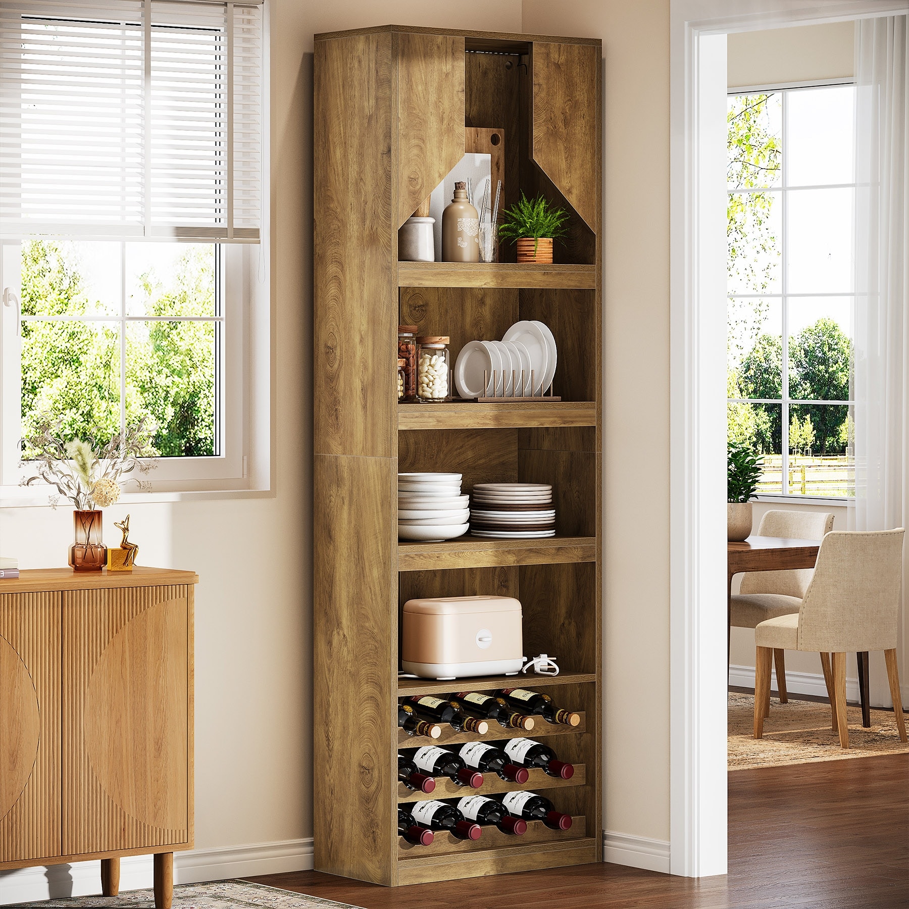Corner Bar Cabinet, Two Shelves, Ten Built-in Wine Rack, Single Door Cabinet, Two interior Shelves, -Black / Pine
